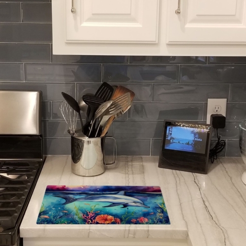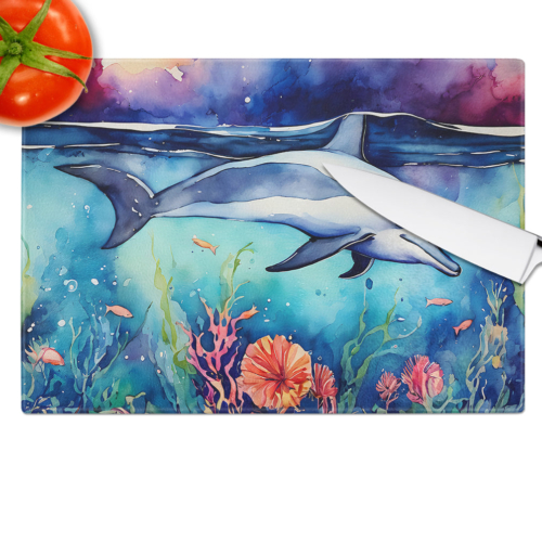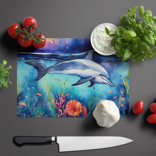 Glass Cutting Board featuring breed specific Dolphin artwork. Introduce your kitchen to the vibrant, large Decorative Glass Cutting Board from Caroline’s Treasures. Crafted from resilient tempered glass, this board is not only a utilitarian necessity but also a colorful art piece. With its generous dimensions of 15 inches in height and 12 inches in length, it offers ample space for all your cutting needs. Every piece showcases captivating artwork from distinguished artists, bringing an aesthetic edge to your kitchen. Beyond its attractive design, this cutting board ensures your countertop stays pristine and unscathed, owing to its heat-resistant properties. Engineered with user convenience in mind, it features non-skid feet for stability, and rounded corners for additional safety. Its robust construction renders it virtually unbreakable, guaranteeing longevity. The board comes with protective feet bumpers, maintaining its position during use. This product is recommended to be hand washed only. Proudly printed and assembled in the United States, this cutting board exemplifies superior craftsmanship. With Caroline’s Treasures’ Decorative Glass Cutting Board, you’re investing in a blend of functionality and artistic flair.