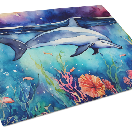 Glass Cutting Board featuring breed specific Dolphin artwork. Introduce your kitchen to the vibrant, large Decorative Glass Cutting Board from Caroline’s Treasures. Crafted from resilient tempered glass, this board is not only a utilitarian necessity but also a colorful art piece. With its generous dimensions of 15 inches in height and 12 inches in length, it offers ample space for all your cutting needs. Every piece showcases captivating artwork from distinguished artists, bringing an aesthetic edge to your kitchen. Beyond its attractive design, this cutting board ensures your countertop stays pristine and unscathed, owing to its heat-resistant properties. Engineered with user convenience in mind, it features non-skid feet for stability, and rounded corners for additional safety. Its robust construction renders it virtually unbreakable, guaranteeing longevity. The board comes with protective feet bumpers, maintaining its position during use. This product is recommended to be hand washed only. Proudly printed and assembled in the United States, this cutting board exemplifies superior craftsmanship. With Caroline’s Treasures’ Decorative Glass Cutting Board, you’re investing in a blend of functionality and artistic flair.