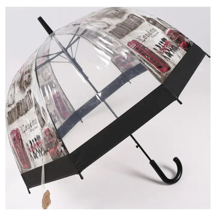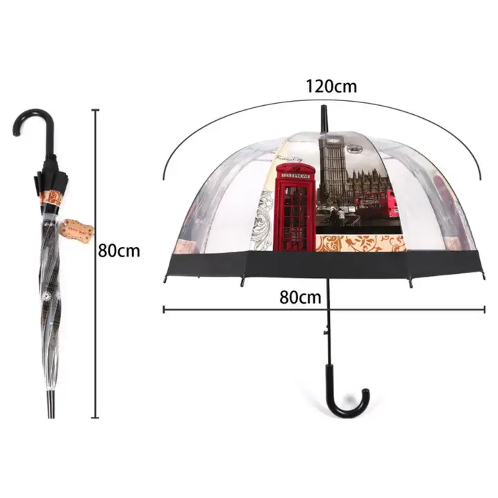 Ladies Dome Shape London Tours Plastic See Through Umbrella