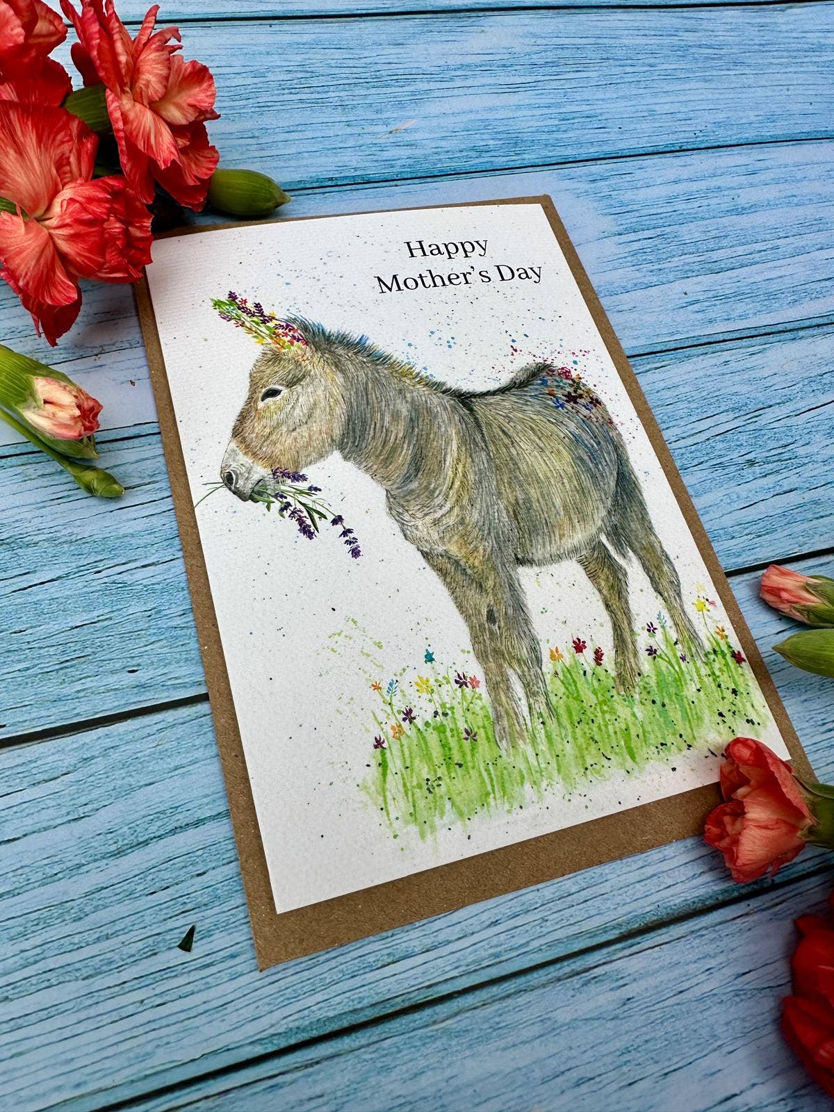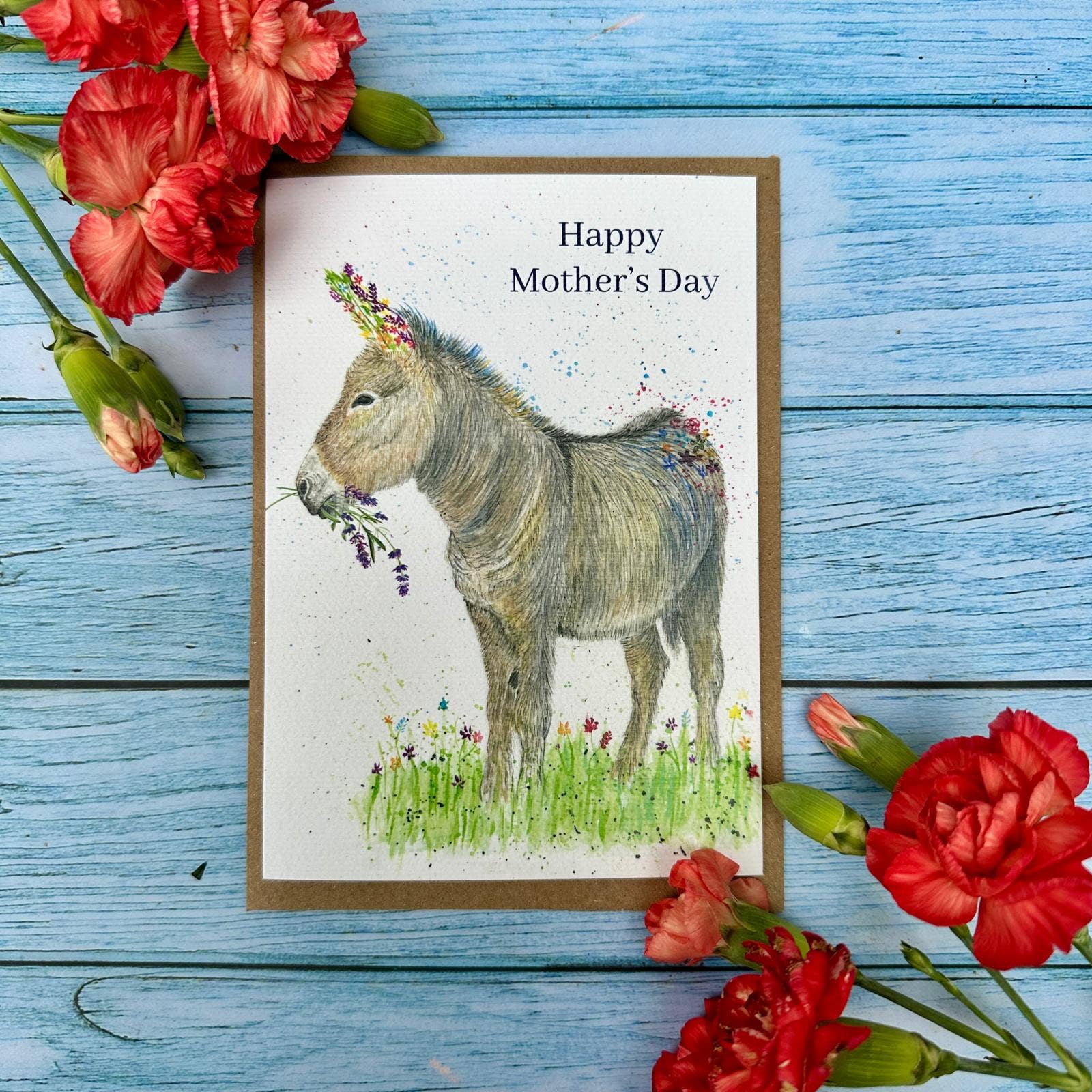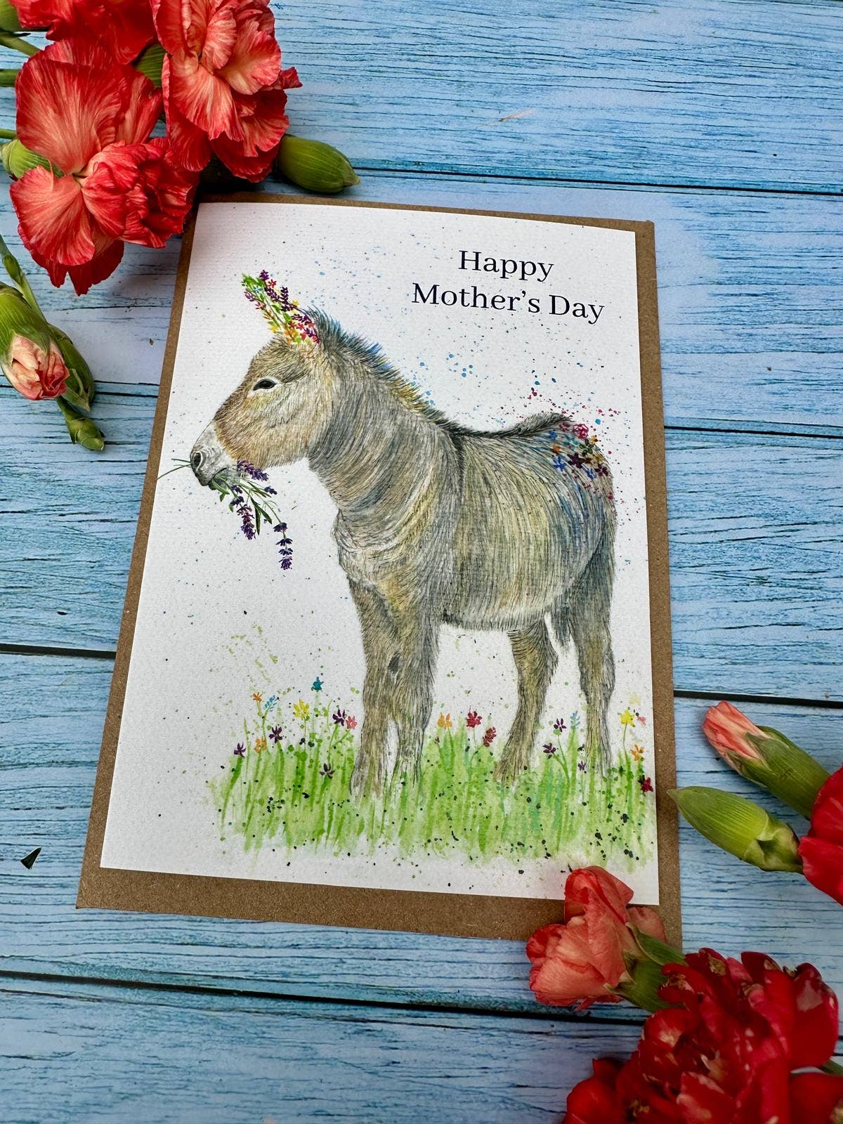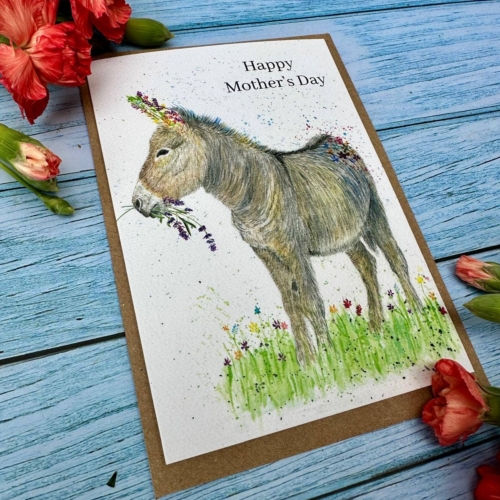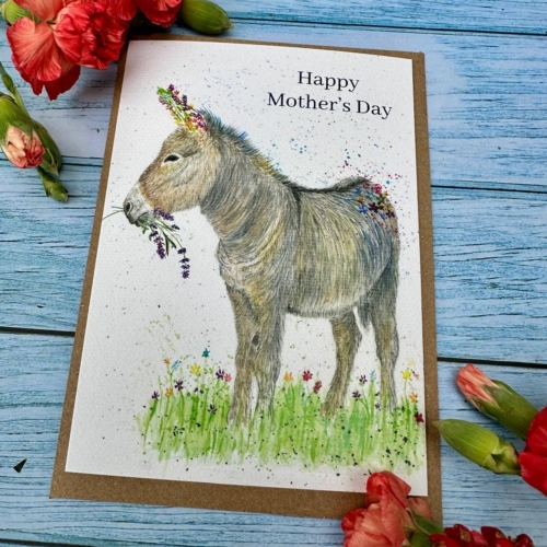 Donkey Mothers Day | Luxury Eco Friendly Card Colourful | Blank | Mum | Love | Friend | Blank | Nature | Occasion | Greetings | British Made | Carbon Neutral | Flowers | Funny