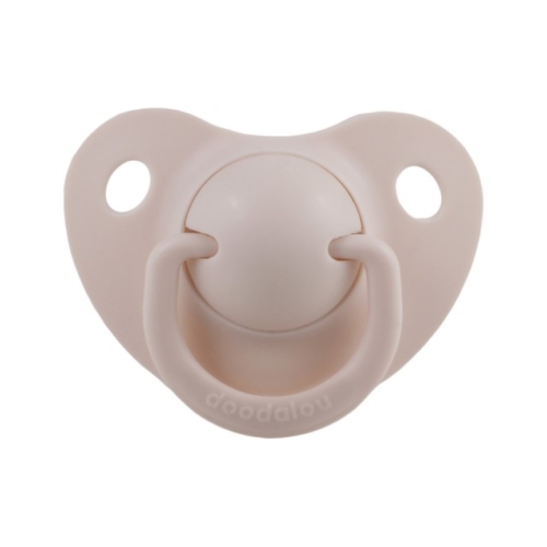 Introducing the Doodalou pacifier!? Thoughtfully designed by a mom of five former pacifier lovers, all of our Doodalou pacifiers are made with the finest 100% medical grade silicone and FDA approved materials.? Additionally, all Doodalou pacifiers are free of BPA, latex, PVC, and phthalates.? For easy cleaning, the pacifiers are top-rack dishwasher safe.? Safety is a top priority with Doodalou products (we have children too!).? Therefore, all Doodalou pacifiers undergo rigorous safety testing and are compliant with all CPSIA regulations.? Check out the other Doodalou pacifier colors here.? The small size pacifier is designed for newborns all the way up to 6 months, while the medium variety is designed for little ones aged 6 to 18 months.