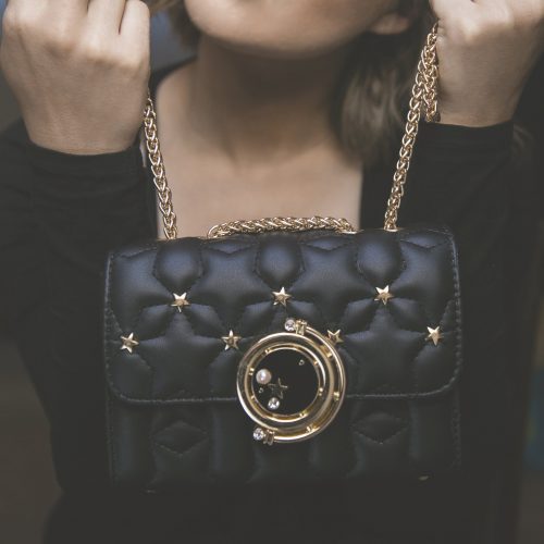 Star quilted vegan leather with gold star studs and a globe fastening feature – you really will be starry eyed for this one.