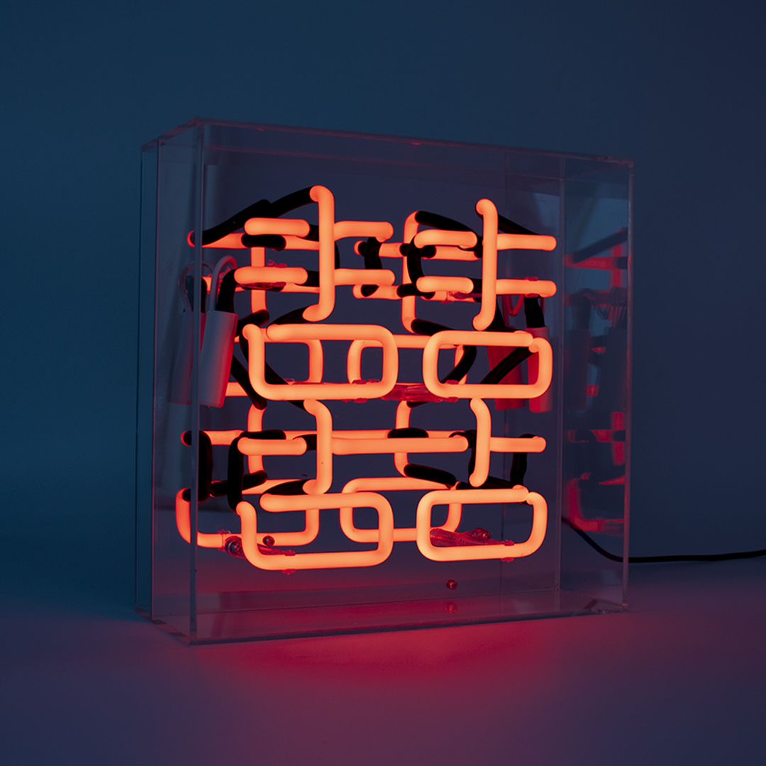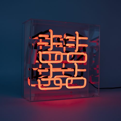 This ‘Double Happiness’ neon light is available in red, encased in a beautiful glossy acrylic box with a mirror back. The perfect statement neon lighting piece for your home or unique gift for that special person.