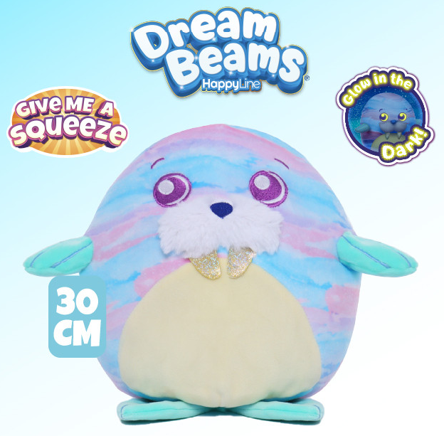 Kids will love this Lucas The Walrus Dream Beams soft plush toy. He’s adorably soft and has a unique glow-in-the-dark feature.Dream Beams are a range of cuddly soft toys that have been nominated for and won various awards. Each Dream Beam character has its own unique talent, and they share one mission, to let kids have a good night’s sleep and sweet dreams.They are designed to offer emotional support and stress relief by offering a multi-sensory experience through cuddling, squeezing, and providing comfort with their glow-in-the-dark features.Children can go on to the Dream Beams website and learn about their characters, download colouring-in sheets, dot-to-dot sheets of their characters, or play mini-games.Plush toys are the perfect tool for children to foster their creativity and intervene in their emotional development. Lucas the Walrus is very soft and measures 30 cm Dream Beams World’s adorable glow-in-the-dark plush toys each have their own unique glow. Each Dream Beam character has its own personality, which makes them unique; collect all of these charming plush toys. Approximate Dimensions: 30cm x 22cm x 30cm cm Suitable for all ages