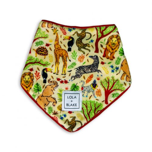 Our Safari dribble bib matches perfectly with our Safari Babygrow for a coordinated look. The soft earthy red towelling is a complementary backing and Velcro makes for an easy fastening.