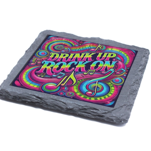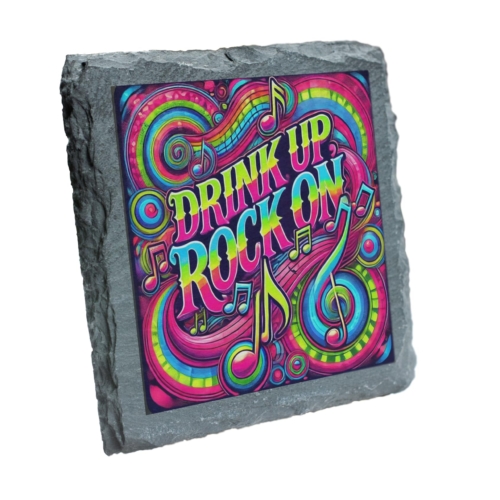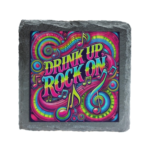 Add a pop of color and a dash of energy to your drinkware collection with the Drink Up, Rock On Slate Coaster! Designed for music and party enthusiasts, this coaster showcases a vivid display of swirling patterns, musical notes, and the energetic “Drink Up, Rock On” message, bringing excitement to every sip. Crafted from high-quality natural slate, this coaster not only delivers on aesthetics but also provides exceptional durability and heat resistance. Its compact 10×10 cm size makes it versatile for use with all types of drinkware, whether you’re enjoying a morning coffee or a refreshing cocktail at a party. Perfect for home bars, music rooms, or as a stylish addition to your kitchen, this coaster is also a great gift for friends, family, or colleagues who love to mix music and merriment. Give your gatherings a fun and lively twist with this vibrant piece of drinkware d?cor. Musical Party Vibes: Features a bold “Drink Up, Rock On” design with vibrant musical notes and swirling patterns. Premium Quality Material: Handcrafted from natural slate for durability, style, and heat resistance. Perfect Size: Compact 10×10 cm dimensions, suitable for all drinkware, from coffee mugs to cocktail glasses. Add Energy to Your Space: Ideal for bar setups, music studios, or party settings. Thoughtful Gift Choice: A fun and practical gift for music lovers, party enthusiasts, and anyone who enjoys vibrant décor.