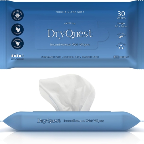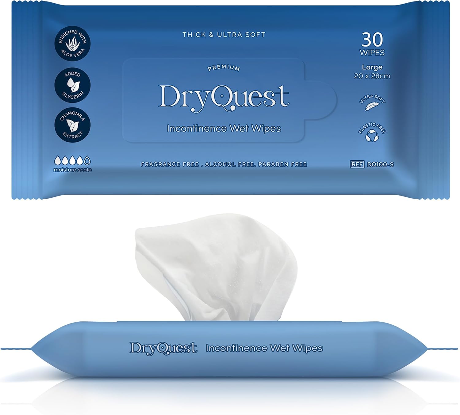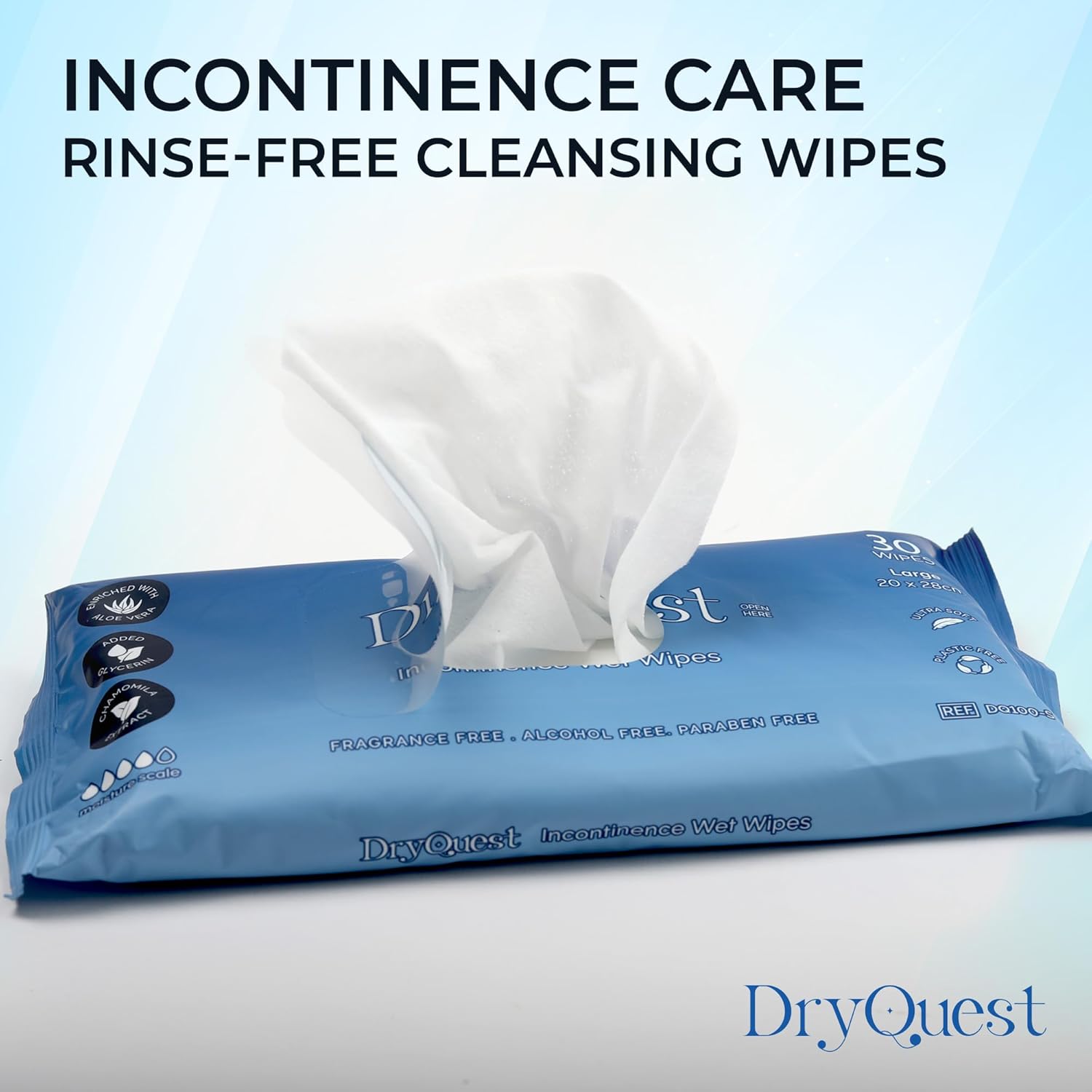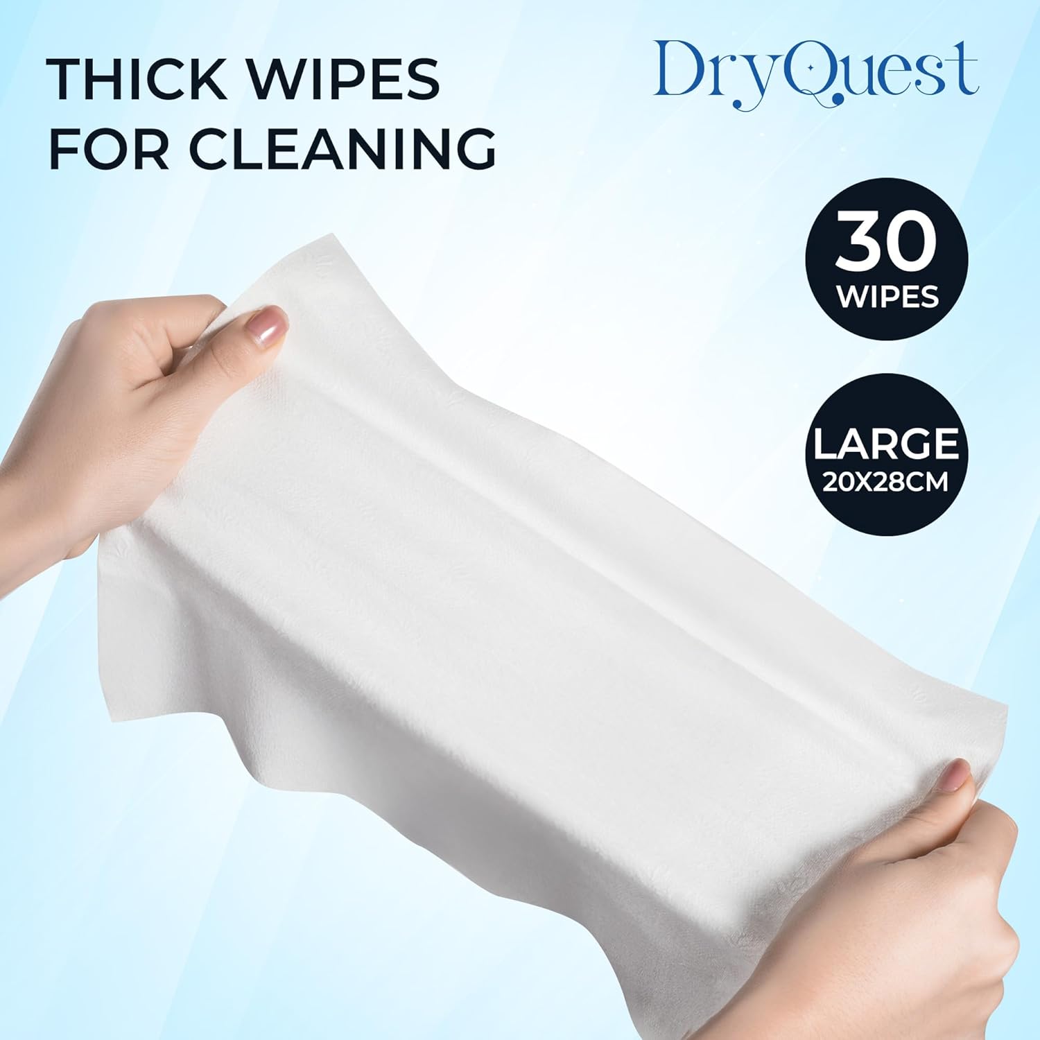 Convenient and Travel-Friendly Pack: This pack of 30 cleaning wipes are ideal for on-the-go hygiene. Compact and easy to carry, DryQuest incontinence wipes adults fits into any bag, ensuring cleanliness and comfort wherever you need it- whether at home, in hospitals, or while traveling.