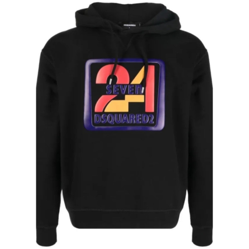 Dsquared2 Black Hoodie, 100% Cotton, Square Logo With Seven 24 inside, Made in Italy, Regular Fit, Fits True To Size, Long Sleeve, Hooded, Casual Wear, Black Hoodie