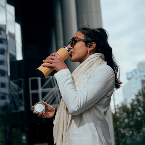 If you want to have a tea or coffee on the go, you can add the tea leaves or ground coffee beans in the infuser with water.