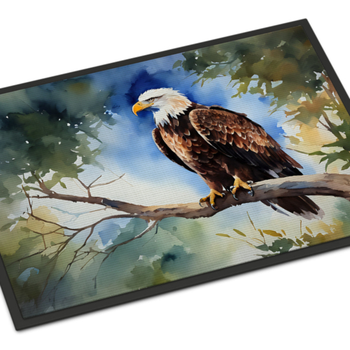 Doormat featuring breed specific Eagle artwork. Welcome your guests in style with our Artwork Door Mat, designed to withstand almost any weather condition. This mat, measuring approximately 18 by 27 inches, is held together by durable black binding tape. Its top layer, composed of polyester felt, is dyed with the eye-catching image you see on the mat. A few layers below provide the mat with stability, while its rubber bottom is stamped to help prevent slipping and ensures safety. Our mat works wonderfully as both an indoor or outdoor door mat. For cleaning, simply hose it off with water or use a power washer – no need for any cleaner that produces suds. Avoid scrubbing with a brush, instead, opt for the vacuum on floor setting. Designed manufactured and printed in the USA, this mat is a perfect addition to your porch, outdoor kitchen, entryway, or any indoor space. Its unique design makes it a charming decorative rug that greets your guests and adds a stylish touch to your home decor.