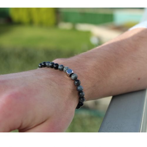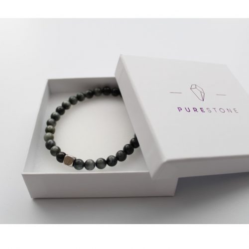 This bracelet is made from 6mm Eagle’s Eye natural stone beads and finished with a Purestone stainless steel logo bead. Everything is strung on a strong elastic nylon thread to deliver a bracelet of the best quality possible.