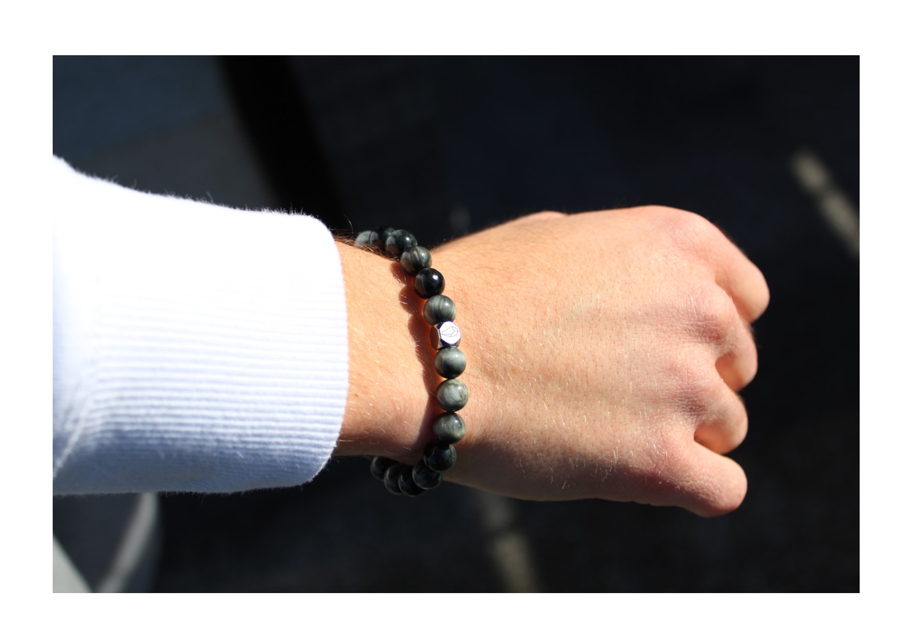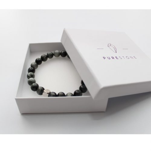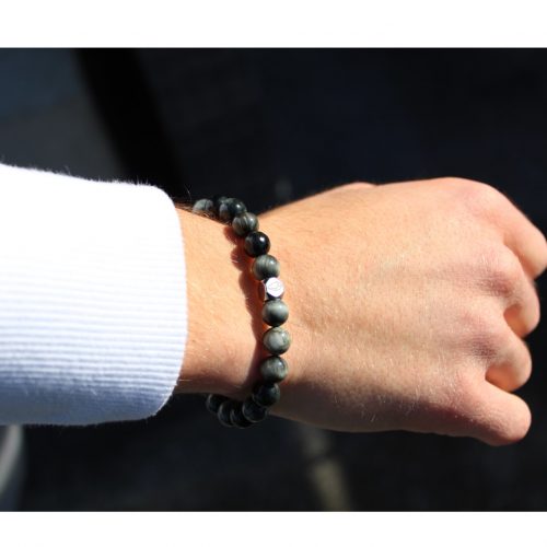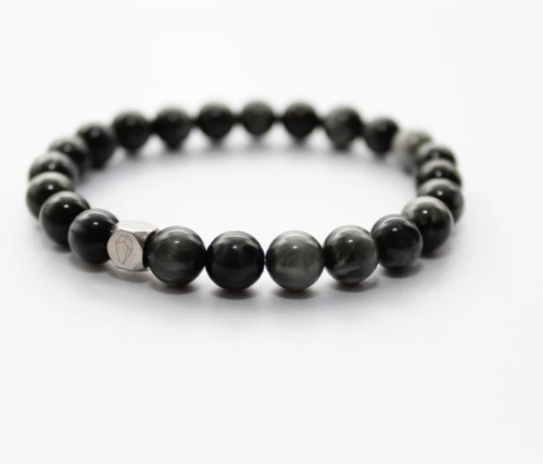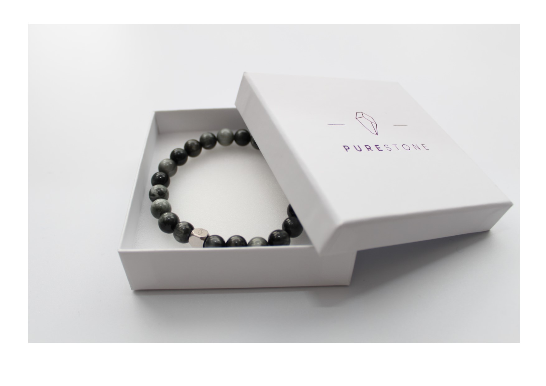 This bracelet is made from 8mm Eagle’s Eye natural stone beads and finished with a Purestone stainless steel logo bead. Everything is strung on a strong elastic nylon thread to deliver a bracelet of the best quality possible.