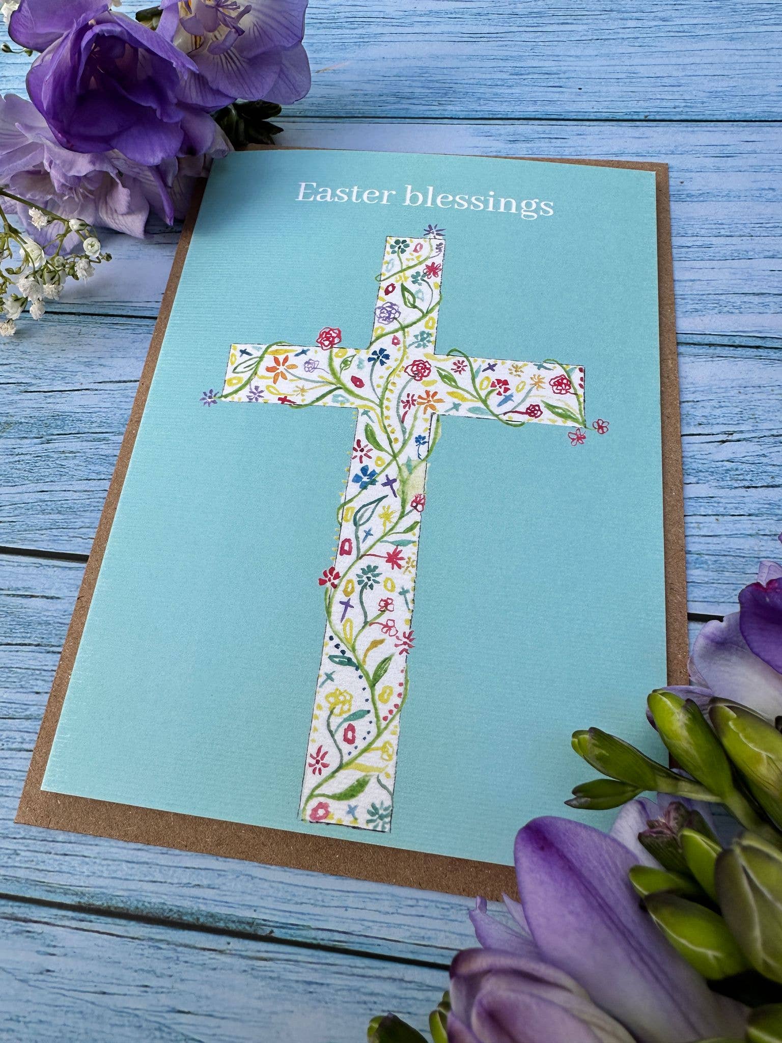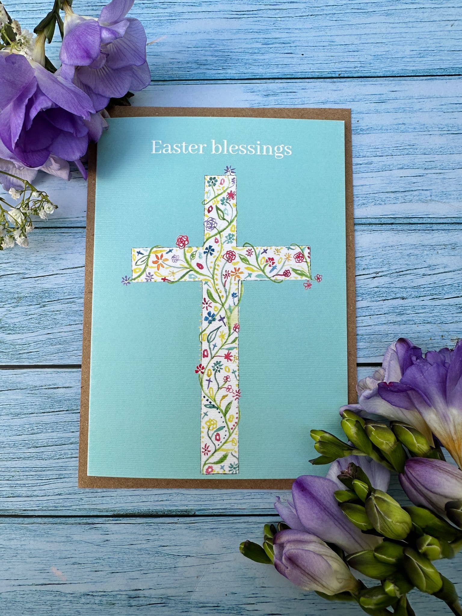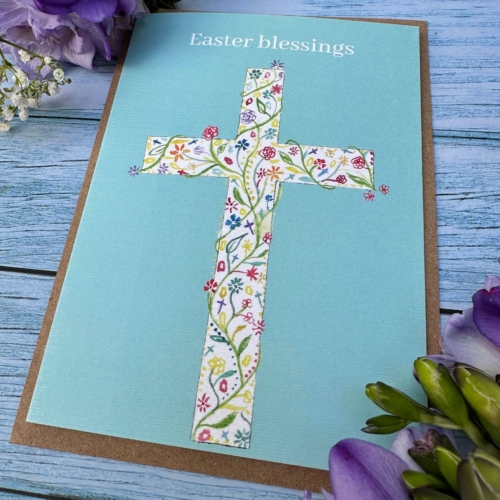 Easter Blessings Cross | Blank Nature Colourful Watercolour | Art | Cute | Eco Friendly Card | Colourful | Blank | Nature | Easter | Occasion | Jen Winnett Art | Spring