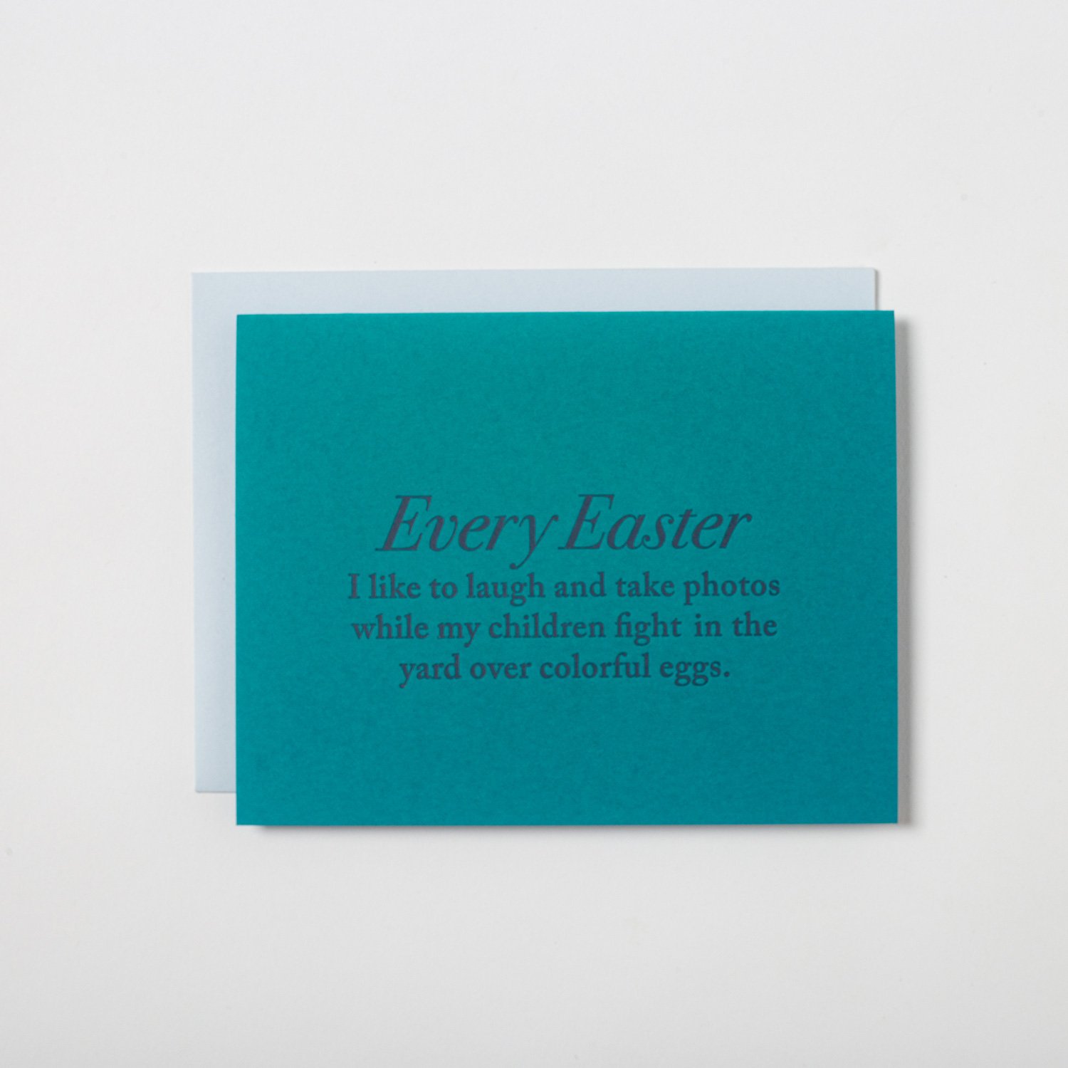 A funny, handmade Easter card featuring pretty lettering and a blank interior for personalized messages. Our 100% eco-friendly cards are letterpress printed with polymer plates on recycled paper and packaged in a biodegradable clear sleeve.