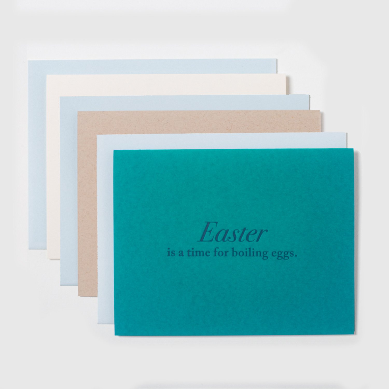 Six funny, handmade Easter cards featuring pretty lettering and a blank interior for personalized messages. Our 100% eco-friendly cards are letterpress printed with polymer plates on recycled paper and packaged in a biodegradable clear sleeve.