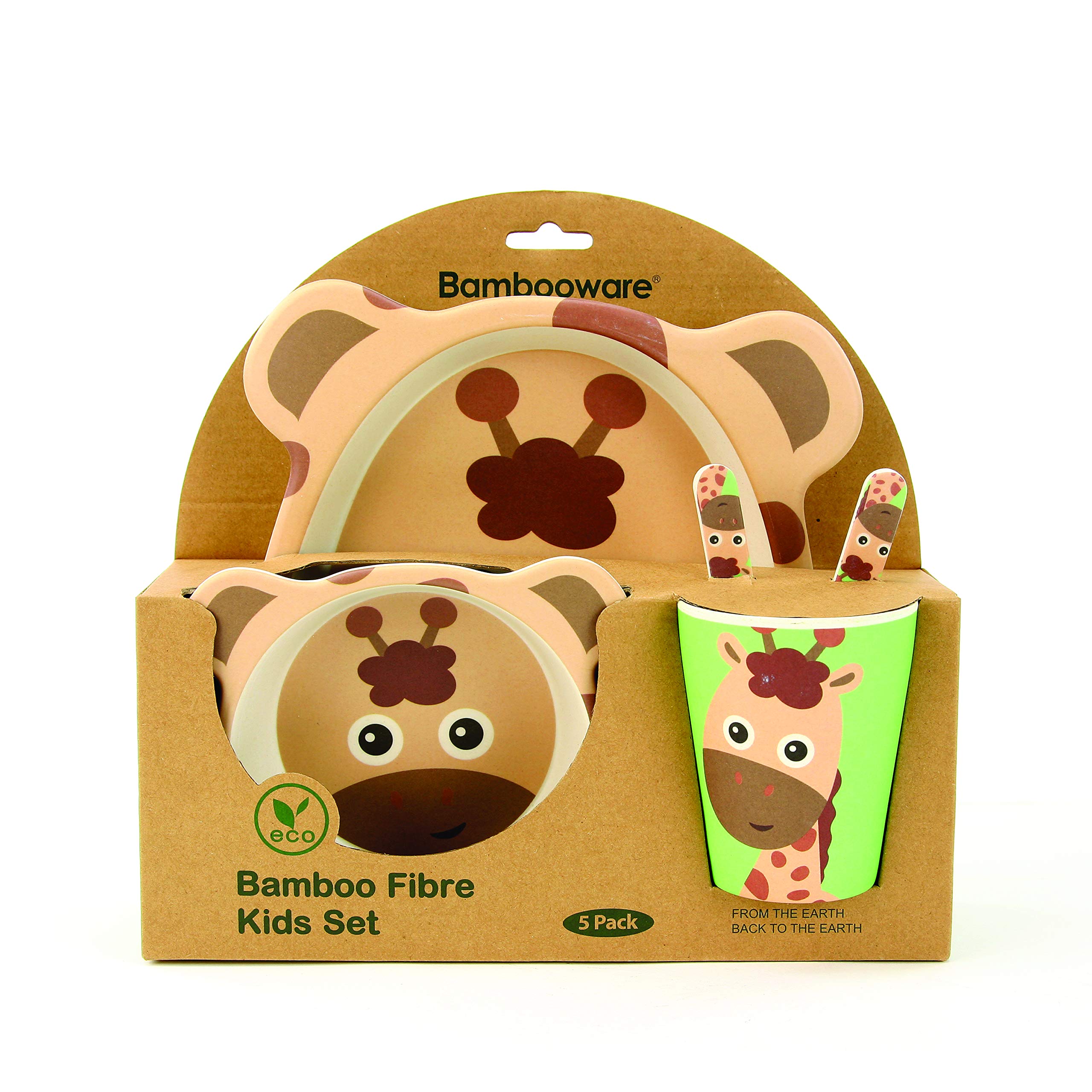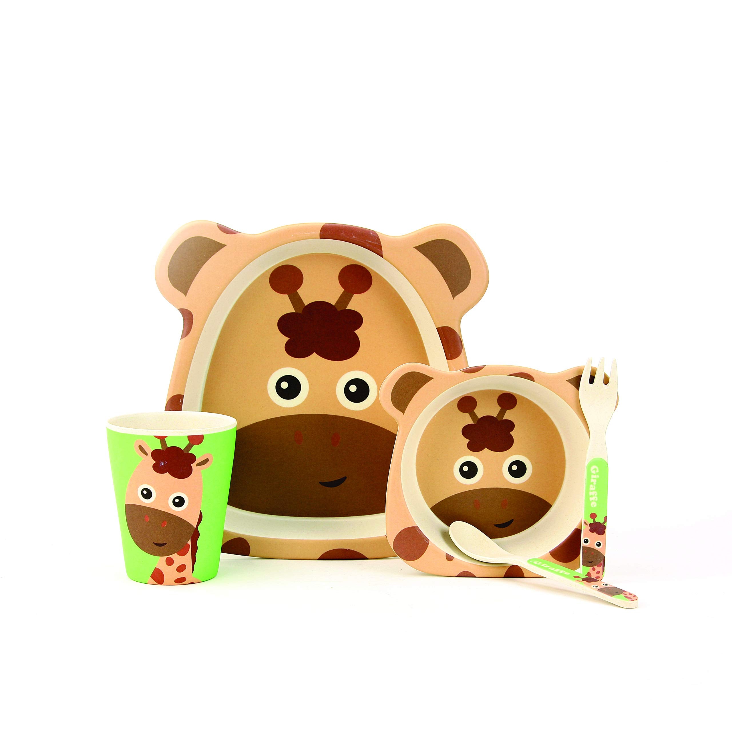 High quality eco bamboo kids dinnerware set in a cute, fun, and kid-friendly giraffe design.