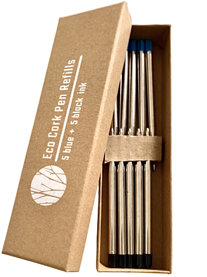 Eco Cork Pen Refill Pack of 10 ( n 5 Black + n 5 Blue)