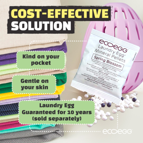 The ecoegg Laundry Egg Refill Pellets are cost effective with a low cost per wash. Not only is the Laundry Egg kind to the environment and your skin, it is also kind to your pocket, costing just 10p per wash when you buy the refills.