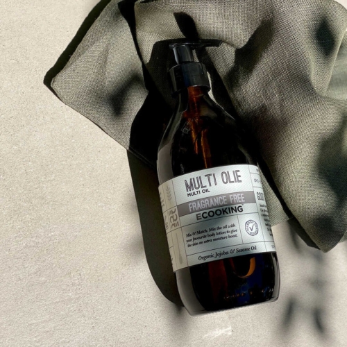 As the name indicates, Ecooking Multi Oil can be used for several purposes. Unique, multifunctional 100% organic oils and fragrance free. Ecooking Multi Oil can be used for/as: Conditioning treatment for your hair Oil for your hair Shaving for both men and women Intimate shaving Cuticle Oil Body Oil Serum underneath your Ecooking Day- or Night Cream If dry and flaky scalp, sleep with the oil applied to scalp and hair Remove makeup and eye makeup Your footbath As massage Oil Contains e.g.: Organic Jojoba Oil Organic sesame Oil Vegan, dermatologically tested, Allergy Certified and fragrance-free. CONTENT Delivered in a 500 ml glass bottle with pump Sesamum Indicum Seed Oil*, Simmondsta Chinensis Seed Oil* * = organic · ** = natural NB: There might be small differences between the informative labelling on our website and the product you receive. This is due to our continuous effort to improve our products according to the latest knowledge about the effect of the ingredients on the environment and health.