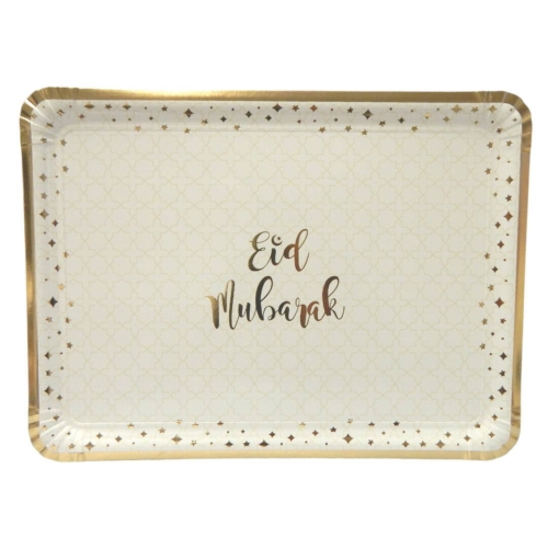 Impress your guests and family with these stylish and elegant Eid Mubarak Serving Trays, perfect for serving treats and delights on festive occasions! – Size: Each tray measures 40cm x 30cm, providing ample space for serving. – Color: Cream and gold, adding a touch of sophistication to your table setting. – Quantity: Comes in a convenient pack of 3, ideal for larger gatherings. – Material: Crafted from food-safe materials, ensuring safe use for serving food. Note: These trays are not suitable for washing and should be handled with care. Elevate your hosting experience with these exquisite Eid Mubarak Serving Trays, designed to complement your celebrations with style and functionality.