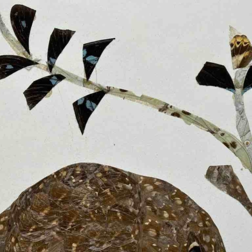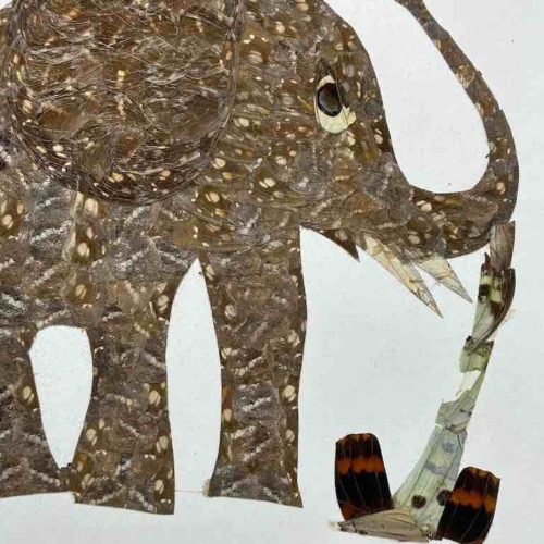 This original, handmade work of art was made in Central African Republic by a cooperative of women who collect 100% real butterfly wings from the ground. Butterflies of many different kinds abound in the forests of the CAR. No butterflies are killed to make this exceptional artwork. We sell them unframed. The wings of a wide variety of butterfly species – resulting in many different colors – are pasted one by one by hand onto a sheet of heavy white paper. You will receive exactly this work of art. This frameable artwork measures 15 3/8 x 8 3/4″ (39 x 22 cm).