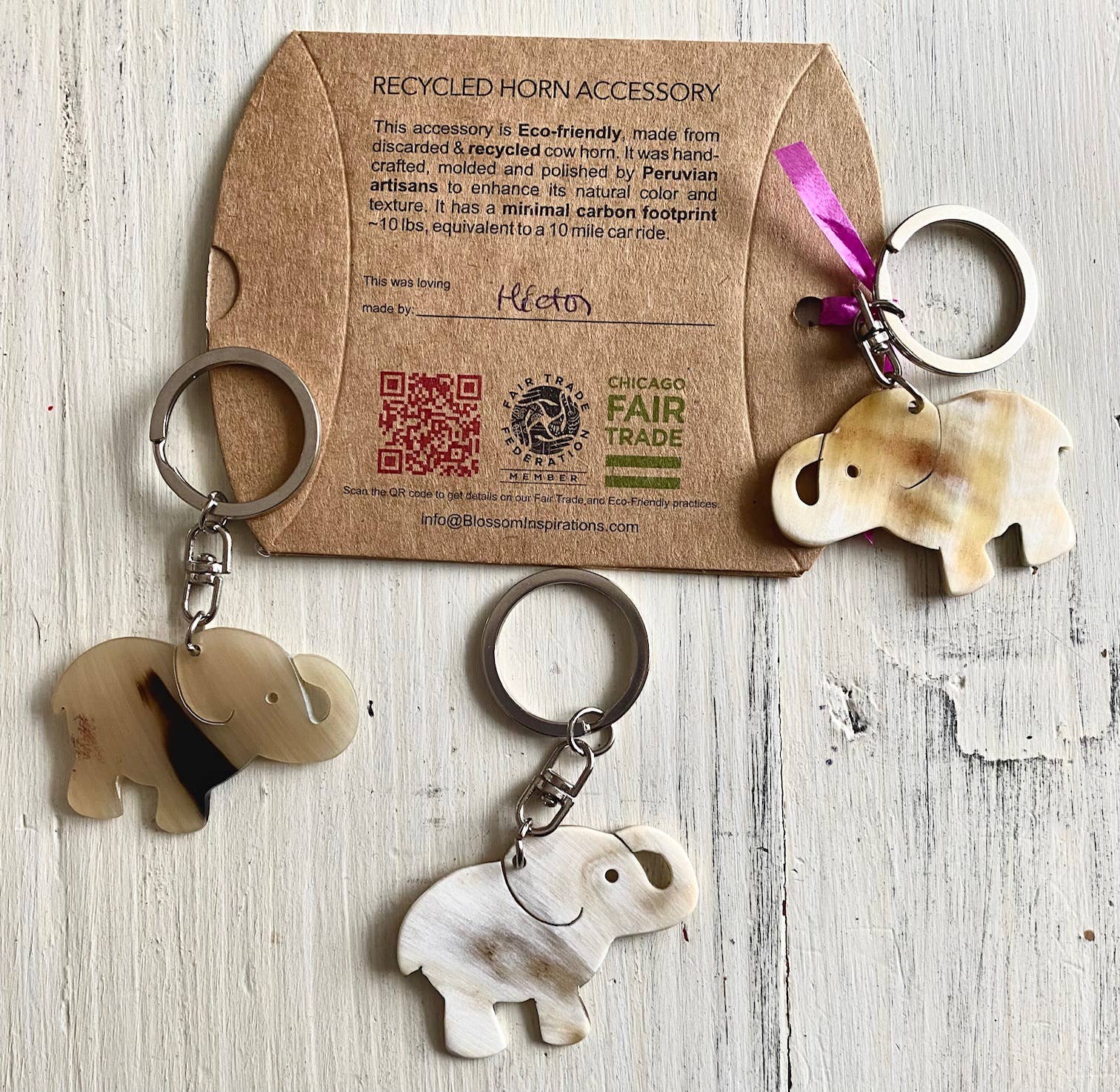 Elephant keychain recycled horn