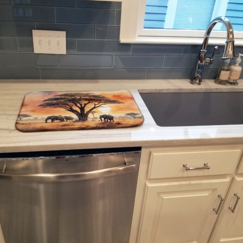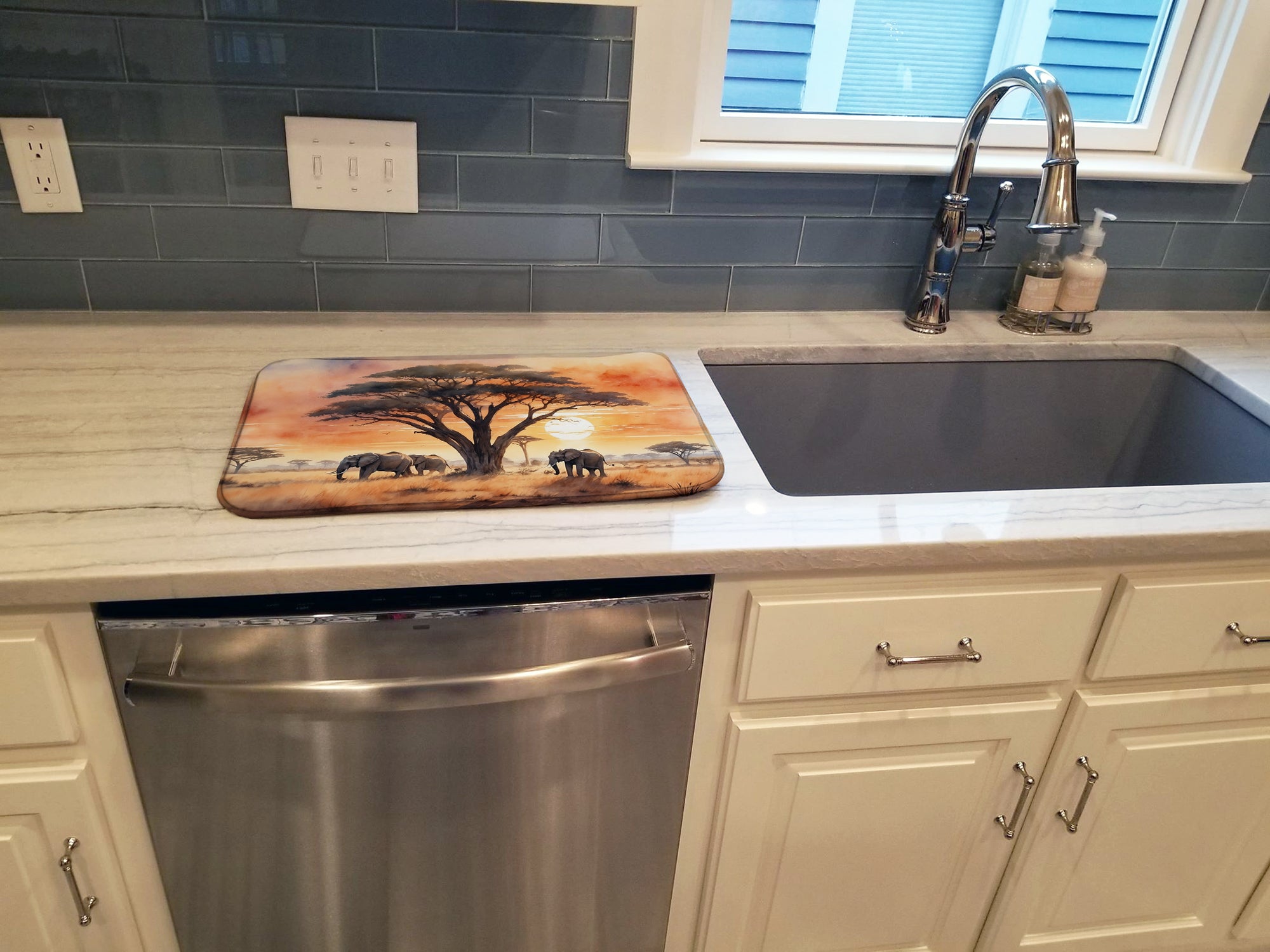Dish Drying Mat featuring breed specific Elephant artwork. Say goodbye to messy countertops and soggy dish towels with our innovative dish drying mat. Our high-quality dish drying pad is designed to keep your countertops dry while offering a stylish and efficient solution. Whether you’re air drying dishes, glasses, stemware, silverware, pots, pans, bottles, or even fruits and vegetables, our dish mat is the perfect choice. The 14 inches x 22 inches size fits most counters and dish drying racks, and the non-slip design ensures stability. Made with water-absorbent polyester and a polyurethane foam insert, our dish drying mat is not only functional but also durable. It’s machine washable and printed in the USA for long-lasting use. The beautiful artwork adds flair to your kitchen decor, making it a perfect housewarming gift or present for any occasion. Upgrade your kitchen experience with our absorbent and versatile dish drying mat.