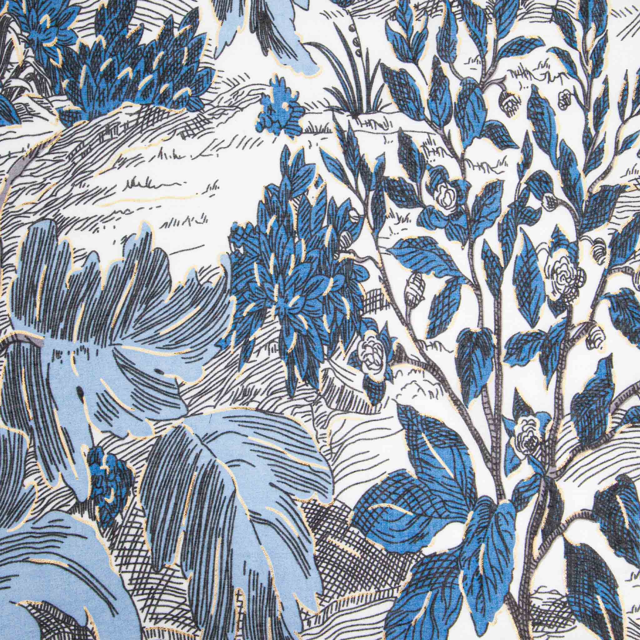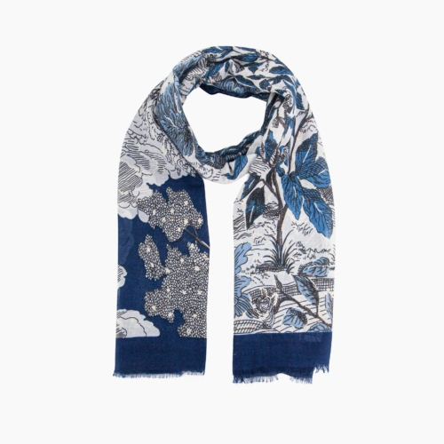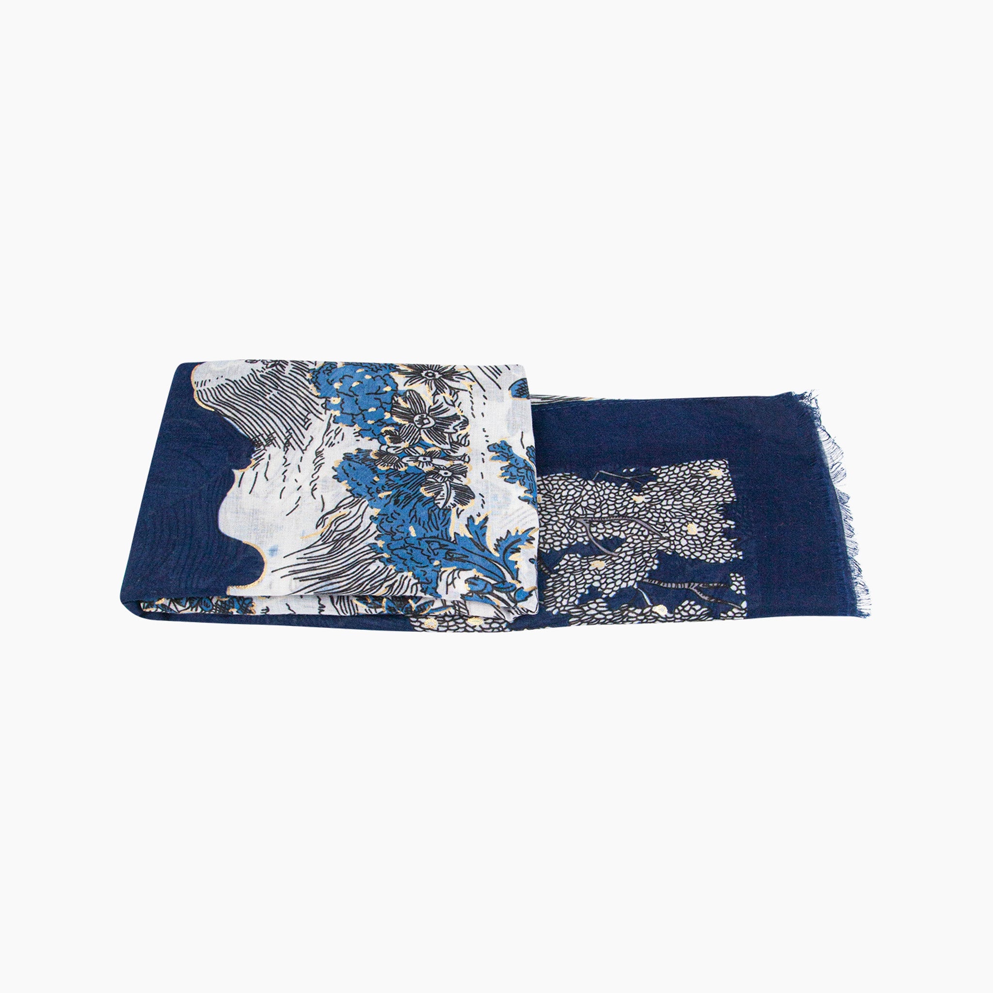 PERFECT FOR Gift for her, birthday gift, Mother’s Day, thank you gift, Easter gift, day to night, casual wear, cocktails with friends, casual weekend, casual drinks, city break, work, lunch with family and friends, date, BBQ. THIS PIECE A blue scarf featuring an intricate floral garden design and a solid border. Crafted from soft, silky viscose this lightweight accessory looks and feels luxurious. Designed for versatility this scarf can also be worn as a summer beach cover-up, shawl, or sarong. SIZE Length 90cm Width 180cm FABRIC Crafted from lightweight viscose for a soft feel. 100% Viscose Made in China
