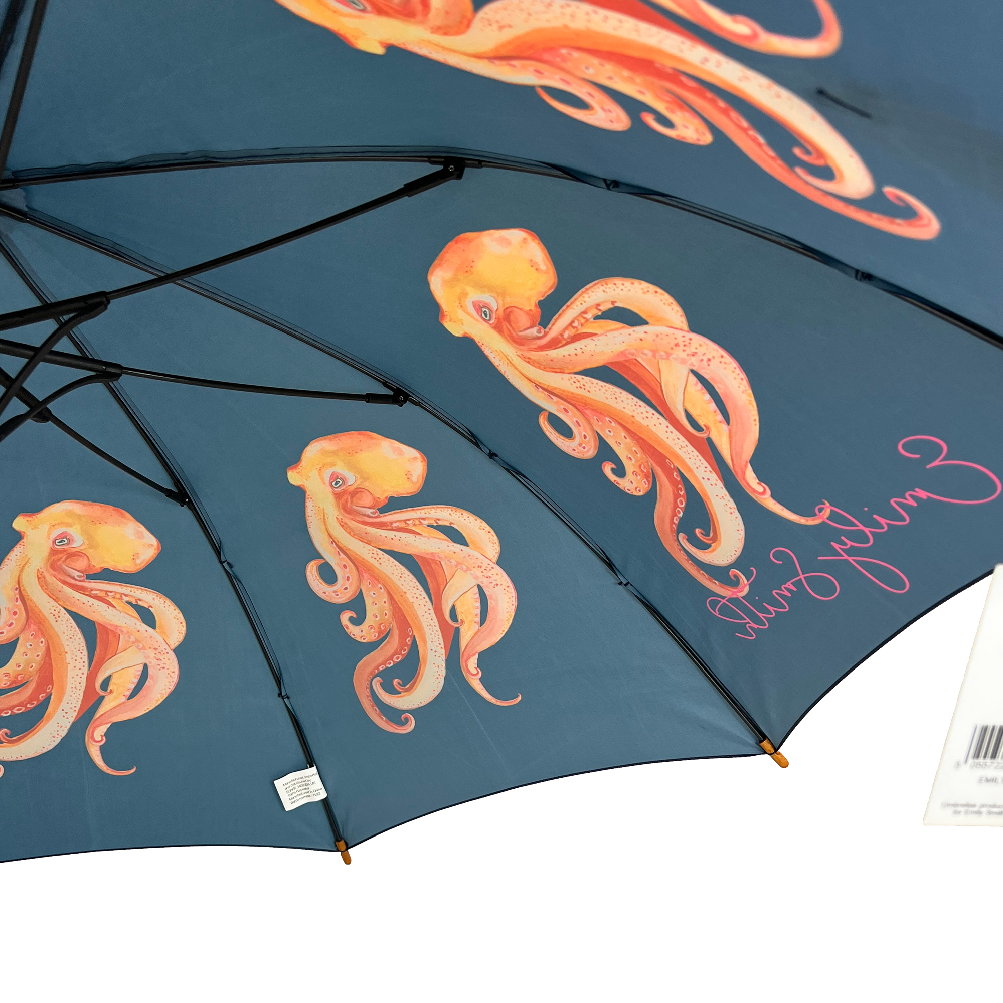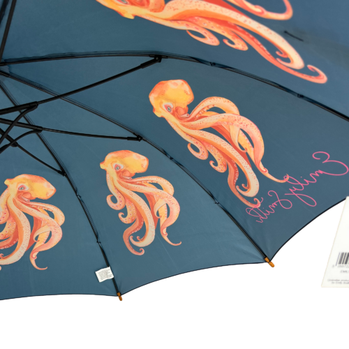 This Oscar Octopus Umbrella designed by Emily Smith Designs and produced by Soake is made with a wooden shaft and handle, fibreglass frame and ribs and a superior pongee material for the canopy.Purchase SOAKE umbrellas with total and absolute confidence. We are established, experienced and passionate about our business, our umbrellas and most importantly you, OUR CUSTOMERS. SOAKE are UK designers, importers and distributors of great quality, beautifully designed umbrellas which all carry our famous no quibble 1 year warranty against faulty workmanship. Soake have been providing umbrellas to customers in the UK for many years and are a UK owned business offering a “local” service that many overseas suppliers simply cannot match. You can buy in ABSOLUTE CONFIDENCE from an ESTABLISHED UK BUSINESS.