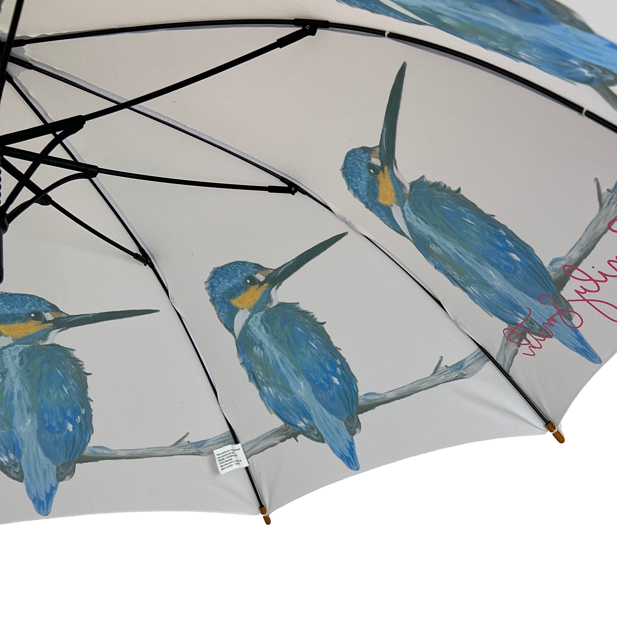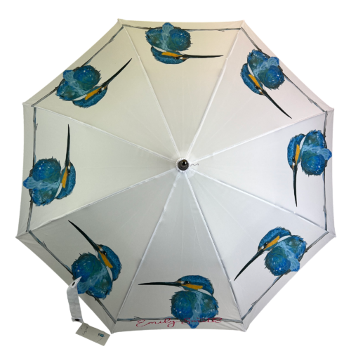 This Skylar Kingfisher Umbrella designed by Emily Smith Designs and produced by Soake is made with a wooden shaft and handle, fibreglass frame and ribs and a superior pongee material for the canopy.Purchase SOAKE umbrellas with total and absolute confidence. We are established, experienced and passionate about our business, our umbrellas and most importantly you, OUR CUSTOMERS. SOAKE are UK designers, importers and distributors of great quality, beautifully designed umbrellas which all carry our famous no quibble 1 year warranty against faulty workmanship. Soake have been providing umbrellas to customers in the UK for many years and are a UK owned business offering a “local” service that many overseas suppliers simply cannot match. You can buy in ABSOLUTE CONFIDENCE from an ESTABLISHED UK BUSINESS.
