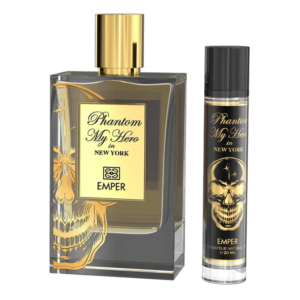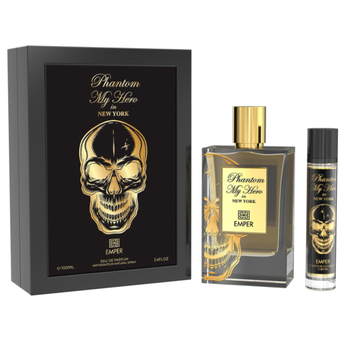 EMPER PHANTOM MY HERO IN NEW YORK Eau de Parfum – Intense & Luxurious An intoxicating fragrance that captures the bold spirit of New York City daring, magnetic, and full of energy.It opens with rich Almond and delicate Heliotrope, leading into a seductive heart of Dark Chocolate and smooth Rum.As it settles, a delicious base of Caramel, Coffee, Sugar Cane, and creamy Sandalwood leaves a long-lasting, irresistible trail. Crafted with highly concentrated perfume oils and the finest quality ingredients, this fragrance embodies true sophistication and strength for the man who defines his own destiny.