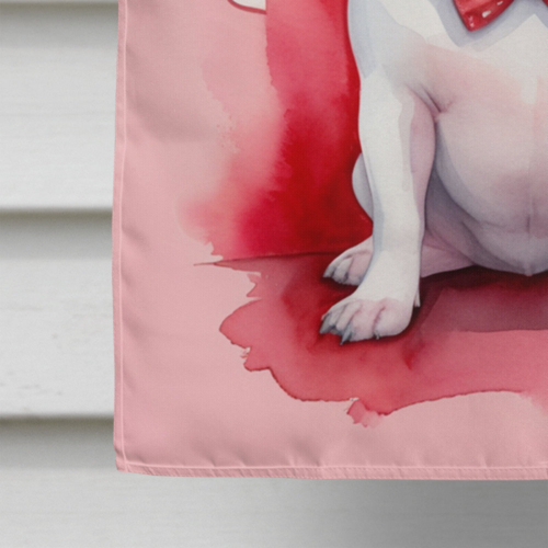 House Flag featuring breed specific English Bull Terrier artwork. Celebrate Valentine’s Day with this Valentine’s Day Large Flag. Presenting our Heavy Duty Polyester House Size Decorative Sleeve Pole Flag, a vibrant addition to enhance the aesthetic appeal of your home. This large decorative flag, measuring approximately 28 x 40 inches, offers ample coverage and visibility. Each flag is meticulously sewn and made individually, ensuring a unique piece that may slightly vary in size. It’s a sleeve pole flag, designed to fit a standard decorative flag pole effortlessly. Please note that the flag pole and bracket are not included and should be purchased separately. What sets our flag apart is its dual-sided print. The design is mirrored on both sides of the fabric, allowing for uniform visibility regardless of the angle. Printed in full color, our flag showcases vibrant hues that truly stand out. To ensure lasting vibrancy and durability, the dyes are heat-set into the fabric. This ensures your flag remains bright and captivating through various weather conditions. Elevate the look of your home with our Heavy Duty Polyester House Size Decorative Sleeve Pole Flag!