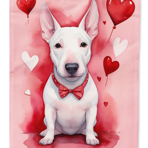 House Flag featuring breed specific English Bull Terrier artwork. Celebrate Valentine’s Day with this Valentine’s Day Large Flag. Presenting our Heavy Duty Polyester House Size Decorative Sleeve Pole Flag, a vibrant addition to enhance the aesthetic appeal of your home. This large decorative flag, measuring approximately 28 x 40 inches, offers ample coverage and visibility. Each flag is meticulously sewn and made individually, ensuring a unique piece that may slightly vary in size. It’s a sleeve pole flag, designed to fit a standard decorative flag pole effortlessly. Please note that the flag pole and bracket are not included and should be purchased separately. What sets our flag apart is its dual-sided print. The design is mirrored on both sides of the fabric, allowing for uniform visibility regardless of the angle. Printed in full color, our flag showcases vibrant hues that truly stand out. To ensure lasting vibrancy and durability, the dyes are heat-set into the fabric. This ensures your flag remains bright and captivating through various weather conditions. Elevate the look of your home with our Heavy Duty Polyester House Size Decorative Sleeve Pole Flag!