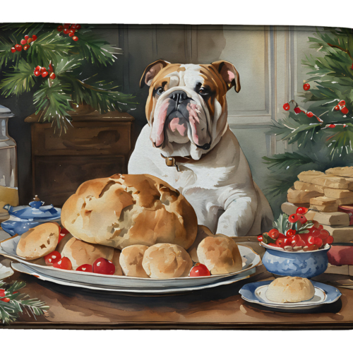 Dish Drying Mat featuring breed specific English Bulldog artwork. Celebrate Christmas with this Christmas Dish Drying Mat. Say goodbye to messy countertops and soggy dish towels with our innovative dish drying mat. Our high-quality dish drying pad is designed to keep your countertops dry while offering a stylish and efficient solution. Whether you’re air drying dishes, glasses, stemware, silverware, pots, pans, bottles, or even fruits and vegetables, our dish mat is the perfect choice. The 14 inches x 22 inches size fits most counters and dish drying racks, and the non-slip design ensures stability. Made with water-absorbent polyester and a polyurethane foam insert, our dish drying mat is not only functional but also durable. It’s machine washable and printed in the USA for long-lasting use. The beautiful artwork adds flair to your kitchen decor, making it a perfect housewarming gift or present for any occasion. Upgrade your kitchen experience with our absorbent and versatile dish drying mat.
