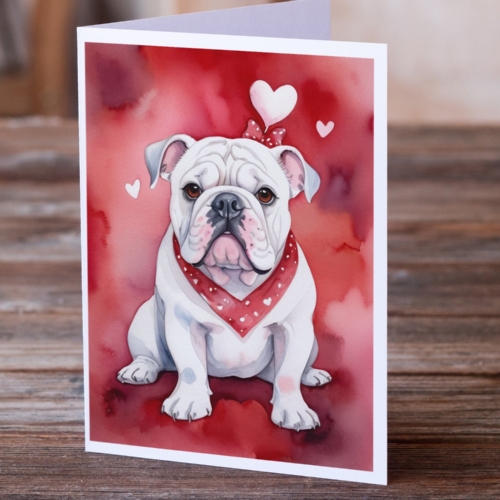 Greeting Cards Pack of 8 featuring breed specific English Bulldog artwork. Celebrate Valentine’s Day with this Valentine’s Day . Celebrate special moments with Caroline’s Treasures Printed Greeting Card Pack. This pack includes eight beautifully folded 5×7 cards, accompanied by eight matching white envelopes. With blank interiors, these cards provide ample space for your personalized messages and heartfelt holiday greetings. Each card features captivating full-color artwork, meticulously printed in our facility on high-quality 80 lb cover stock or 216 GSM. The super smooth finish of the white cards enhances the visual impact of the artwork, creating a truly stunning presentation. Designed by our talented in-house artists or licensed artists, the artwork on these cards showcases their creativity and attention to detail. From vibrant illustrations to captivating designs, each card tells its own unique story. Whether it’s for birthdays, anniversaries, holidays, or any special occasion, Caroline’s Treasures Greeting Card Pack is the perfect way to convey your heartfelt sentiments. Share joy, love, and warm wishes with these exquisite cards and make every moment unforgettable.
