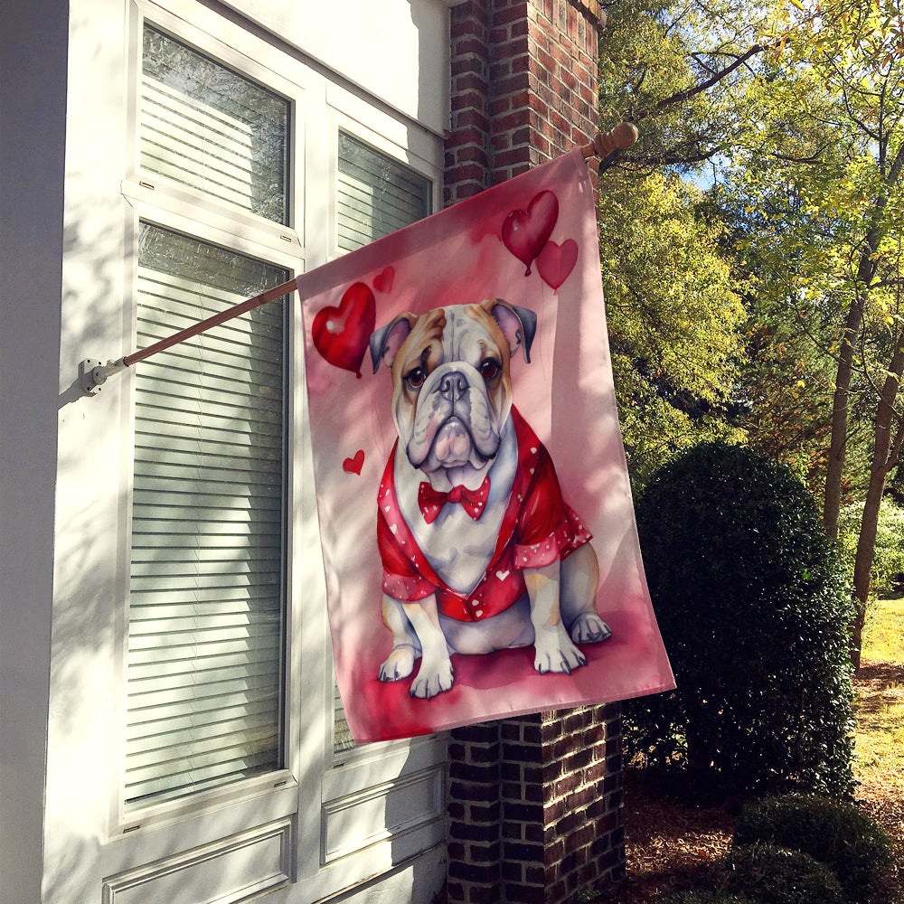 House Flag featuring breed specific English Bulldog artwork. Celebrate Valentine’s Day with this Valentine’s Day Large Flag. Presenting our Heavy Duty Polyester House Size Decorative Sleeve Pole Flag, a vibrant addition to enhance the aesthetic appeal of your home. This large decorative flag, measuring approximately 28 x 40 inches, offers ample coverage and visibility. Each flag is meticulously sewn and made individually, ensuring a unique piece that may slightly vary in size. It’s a sleeve pole flag, designed to fit a standard decorative flag pole effortlessly. Please note that the flag pole and bracket are not included and should be purchased separately. What sets our flag apart is its dual-sided print. The design is mirrored on both sides of the fabric, allowing for uniform visibility regardless of the angle. Printed in full color, our flag showcases vibrant hues that truly stand out. To ensure lasting vibrancy and durability, the dyes are heat-set into the fabric. This ensures your flag remains bright and captivating through various weather conditions. Elevate the look of your home with our Heavy Duty Polyester House Size Decorative Sleeve Pole Flag!