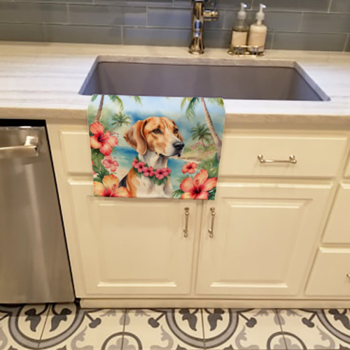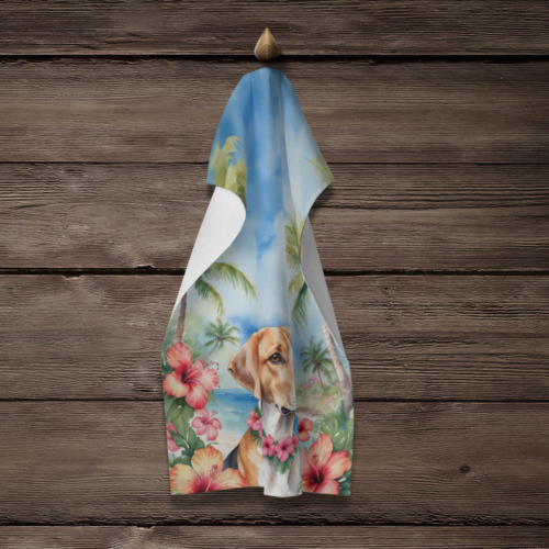 Kitchen Towel featuring breed specific English Foxhound artwork. Experience the perfect blend of aesthetic appeal and functional excellence with our Plush Velour Kitchen Towels. These are not your ordinary decorative kitchen towels that gather dust. Instead, they are designed to be as practical as they are stylish. The front layer of our towel is constructed from a minky plush polyester, known for its durability and color retention. Unlike conventional kitchen towels, the artwork on our towels is dyed directly into the fabric, ensuring vibrant colors that last. Polish your glassware to a brilliant sparkle using the plush front side of the towel. Flip to the back, crafted from 100% cotton terry loop, to exploit its exceptional absorbency for drying dishes or wiping down counters. Our kitchen towels redefine the concept of functional art, offering lasting quality that maintains the towel’s shape over time. Measuring 15 inches by 25 inches and weighing 2.3 lbs per dozen, these towels deliver an overwhelming sensory experience with their soft, plush, and smooth texture. The edges are meticulously finished with binding, enhancing their durability and visual appeal. For your convenience, these towels are machine washable and can be dried on low heat. After the first wash, the top fabric becomes even softer and fluffier, eliminating the need for ironing. Treat your kitchen to the luxury and functionality it deserves with our plush velour kitchen towels.