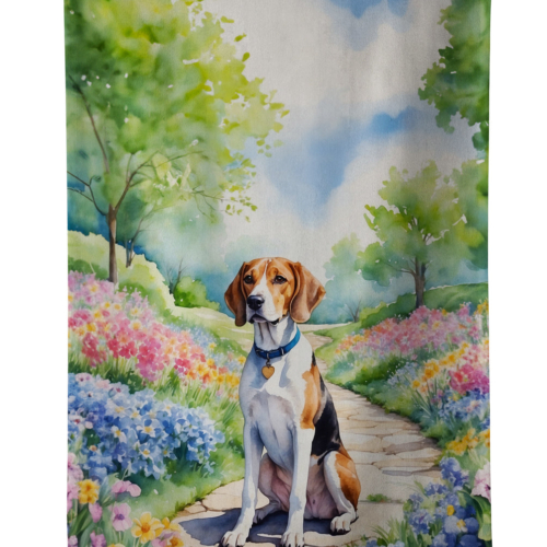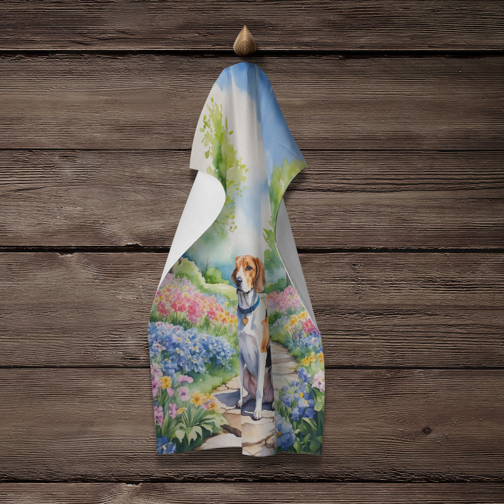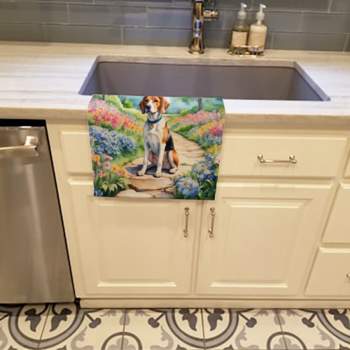 Kitchen Towel featuring breed specific English Foxhound artwork. Experience the perfect blend of aesthetic appeal and functional excellence with our Plush Velour Kitchen Towels. These are not your ordinary decorative kitchen towels that gather dust. Instead, they are designed to be as practical as they are stylish. The front layer of our towel is constructed from a minky plush polyester, known for its durability and color retention. Unlike conventional kitchen towels, the artwork on our towels is dyed directly into the fabric, ensuring vibrant colors that last. Polish your glassware to a brilliant sparkle using the plush front side of the towel. Flip to the back, crafted from 100% cotton terry loop, to exploit its exceptional absorbency for drying dishes or wiping down counters. Our kitchen towels redefine the concept of functional art, offering lasting quality that maintains the towel’s shape over time. Measuring 15 inches by 25 inches and weighing 2.3 lbs per dozen, these towels deliver an overwhelming sensory experience with their soft, plush, and smooth texture. The edges are meticulously finished with binding, enhancing their durability and visual appeal. For your convenience, these towels are machine washable and can be dried on low heat. After the first wash, the top fabric becomes even softer and fluffier, eliminating the need for ironing. Treat your kitchen to the luxury and functionality it deserves with our plush velour kitchen towels.