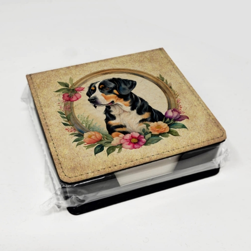 PU Leather Note Paper Holder featuring breed specific Entlebucher Mountain Dog artwork. Elevate your workspace with this PU Leather Note Paper Holder, crafted to resemble luxurious leather without the use of animal products. Made from durable synthetic PU leather, it offers both a premium look and eco-friendly appeal. This note holder, compactly sized at 4.25 x 4.25 x 1.25 inches, includes about 160 sheets of 3.75 x 3.75-inch note paper—ideal for quick notes and reminders. An exclusive artist-designed cover makes each holder uniquely vibrant, adding a splash of color and personality to any desk or office. The discrete design keeps note paper hidden, maintaining a neat and organized workspace. Perfect as a gift or for personal use, this stylish holder is refillable with standard paper, ensuring long-lasting utility. A must-have for anyone seeking a sophisticated, artful touch to their workspace while supporting animal-friendly products. Add style, organization, and creativity to your everyday routine with this elegant note paper holder.