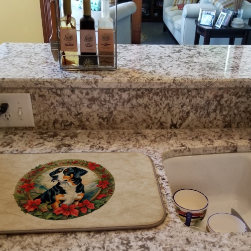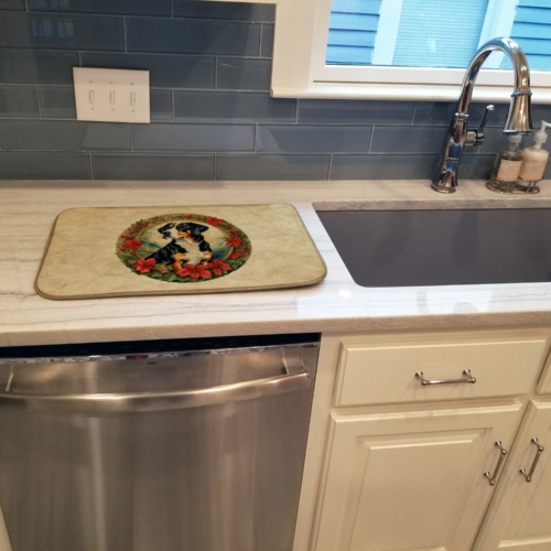 Entlebucher Mountain Dog Christmas Flowers Dish Drying Mat