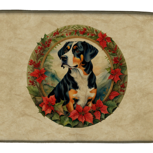 Entlebucher Mountain Dog Christmas Flowers Dish Drying Mat