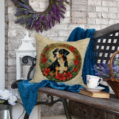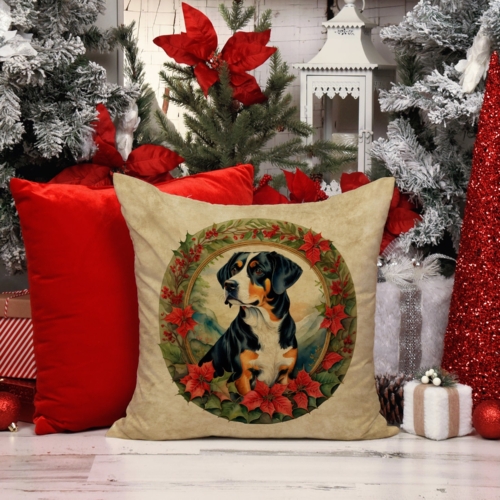 Throw Pillow featuring breed specific Entlebucher Mountain Dog artwork. Celebrate Christmas with this Christmas Pillow. Revitalize your outdoor or indoor living space with Caroline’s Treasures 18×18 Fabric Decorative Pillow. With a generously sized dimension of approximately 18 inches by 18 inches, this pillow makes a comfortable and aesthetic addition to any seating area. Made from a unique, water-resistant material developed by Caroline’s Treasures, the pillow sham is 100% polyester fabric that’s durable and ready to weather any condition. Its vibrant, full-color artwork will not fade over time as it is dyed with color-fast dyes. Whether you place it on your patio furniture, porch, veranda, or indoor couch, its soft canvas fabric ensures a cozy experience. The pillow is handcrafted in the United States, featuring a sham created from three pieces of fabric and a polyester insert for enduring shape and overstuffed comfort. Despite being robustly built to endure the outdoors, it is as soft and snug as your favorite indoor cushions. Please note, as all our pillows are handmade, sizes may vary slightly, adding to the charm of this unique decorative item.