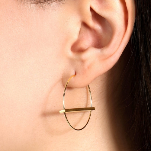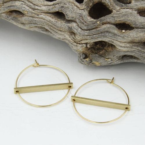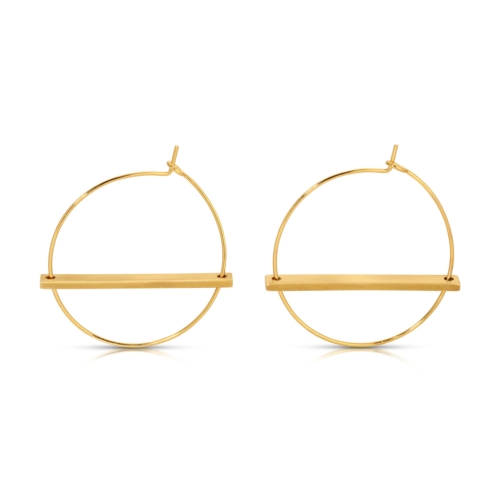 Super clean and simple everyday hoops featuring gold-plated brass hoops and raw brass bar. – Gold plated brass hoops- Gold-plated brass hoops and raw brass bar – 1 1/8″ hoop- Handmade in USA