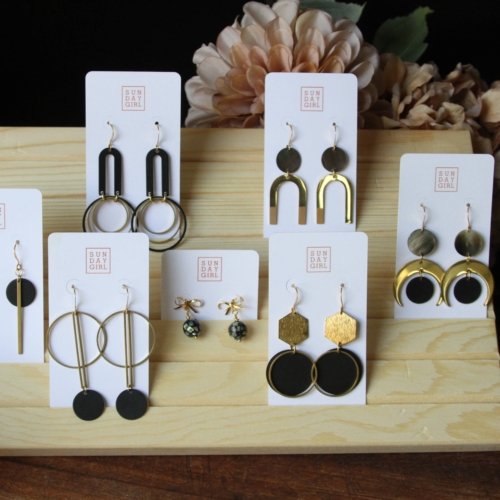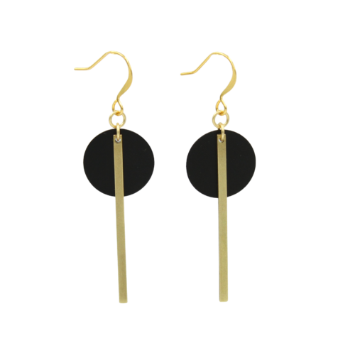 Simple, elegant 2-tone black and brass dangle earrings are a perfect pairing with any of our other 2 tone or brass pieces. Lacquered raw brassBlackened brass diskGold-over-brass ear wire, nickel-free2″ lengthHandmade