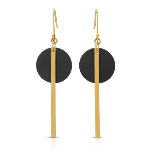 Simple, elegant 2-tone black and brass dangle earrings are a perfect pairing with any of our other 2 tone or brass pieces. Lacquered raw brassBlackened brass diskGold-over-brass ear wire, nickel-free2″ lengthHandmade