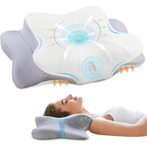 Ergonomic Butterfly DesignScientifically designed contours fit the natural curve of the head, neck, and shoulders to provide precise cervical support and spine alignment during sleep. Slow Rebound Memory FoamPremium-density memory foam with 3–5 second rebound offers long-lasting comfort and adapts to different sleeping positions (back, side, and stomach). Dual-Height ZonesCustomized height zones help maintain open airways, reducing snoring and improving breathing. Pressure Relief CenterCentral cavity design cradles the head gently and relieves pressure for deep, restorative sleep. Breathable & Skin-Friendly FabricComes with a washable, hypoallergenic, and breathable pillow cover for all-season comfort.