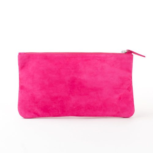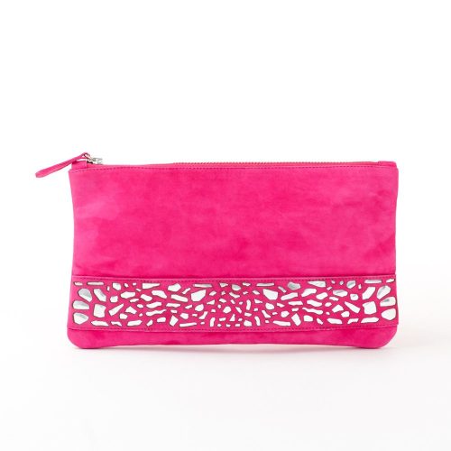 Sleek pink leather / suede pouchette, embellished with silver cut outs.