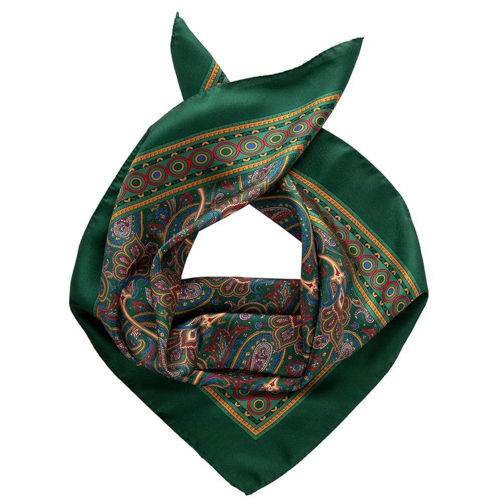The perfect pick-me-up to your wardrobe. An intricate classic paisley print in red, blue and gold on a rich shade of dark emerald green.