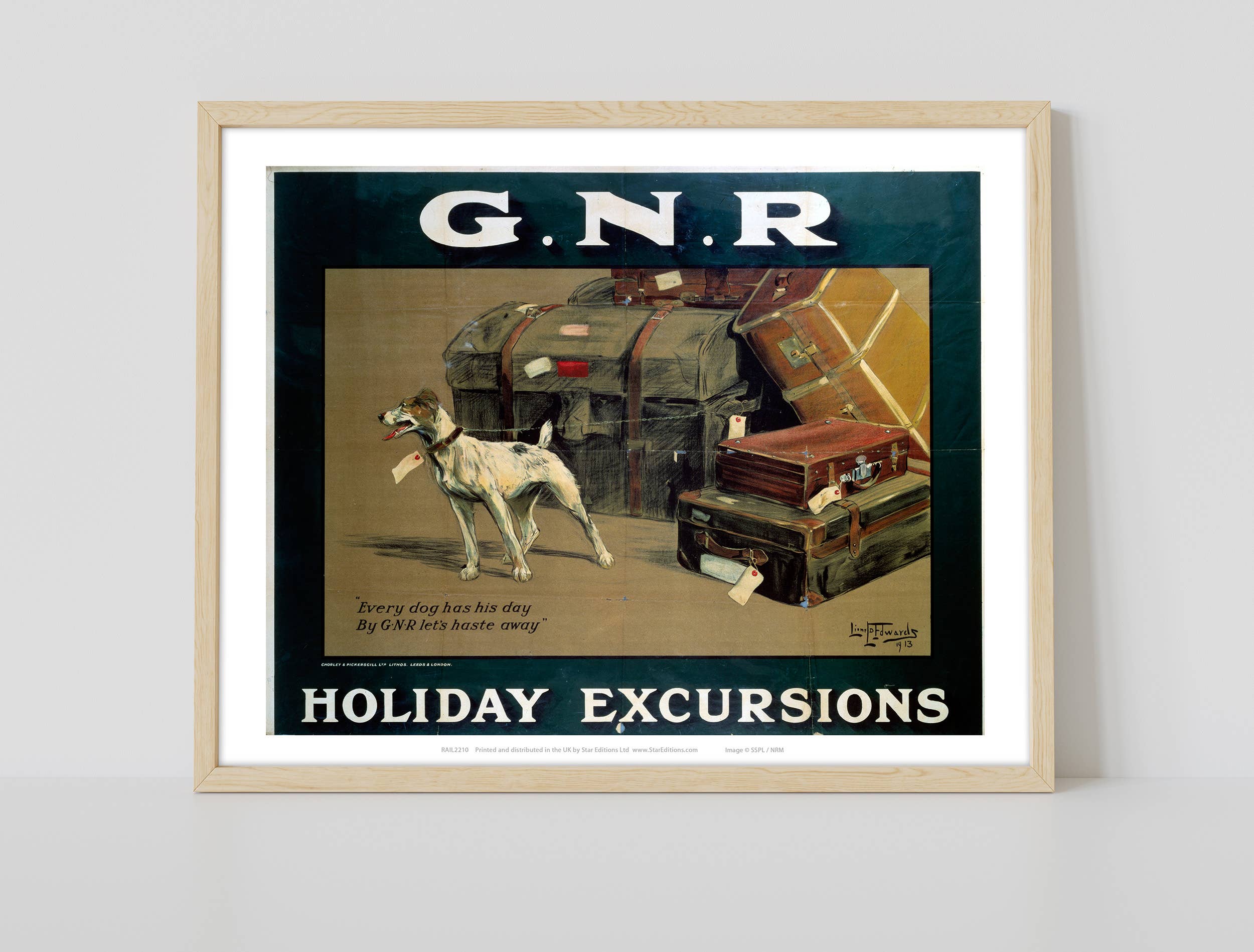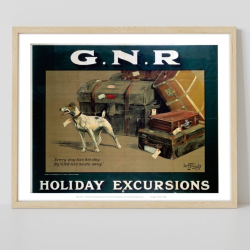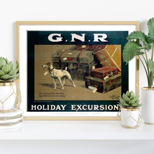 Premium Every Dog has his Day – GNR Holiday Excursions art print measures 11×14 inches in size (28cm x 35.5cm).
