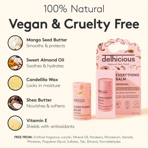 The Everything Balm is your ultimate skin saviour. A deeply nourishing, multipurpose balm for face, lips and body. Packed with skin-loving ingredients like shea butter, mango butter and castor seed oil, it melts into the skin to soothe dryness, calm irritation and leave a dewy, healthy glow. Use it anywhere, anytime – from flaky lips to rough elbows for instant, natural relief.